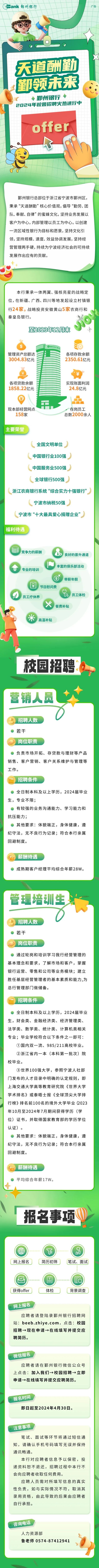 鄞州银行2024年校园招聘简章
