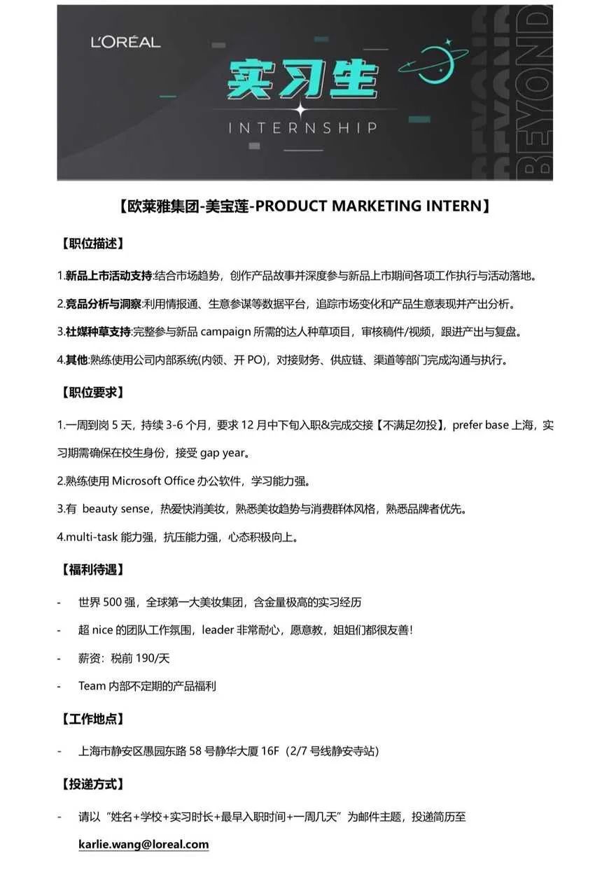欧莱雅实习生招聘简章