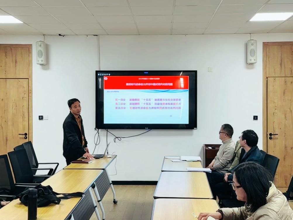 会议第一议程聚焦 “十五五”规划建议学习,曾守桢教授从国家发展战略全局出发,解读了 “十五五”时期的历史方位——作为全面建设社会主义现代化国家的关键时期,阐释了规划制定的时代背景、指导思想与总体目标,强调要立足新发展阶段、贯彻新发展理念、构建新发展格局。同时,结合中国式现代化的内涵特征,明确了新时代下个人与单位的使命责任,提出需将个人发展、单位建设与国家现代化进程深度融合,以实干担当推动各项工作落地。