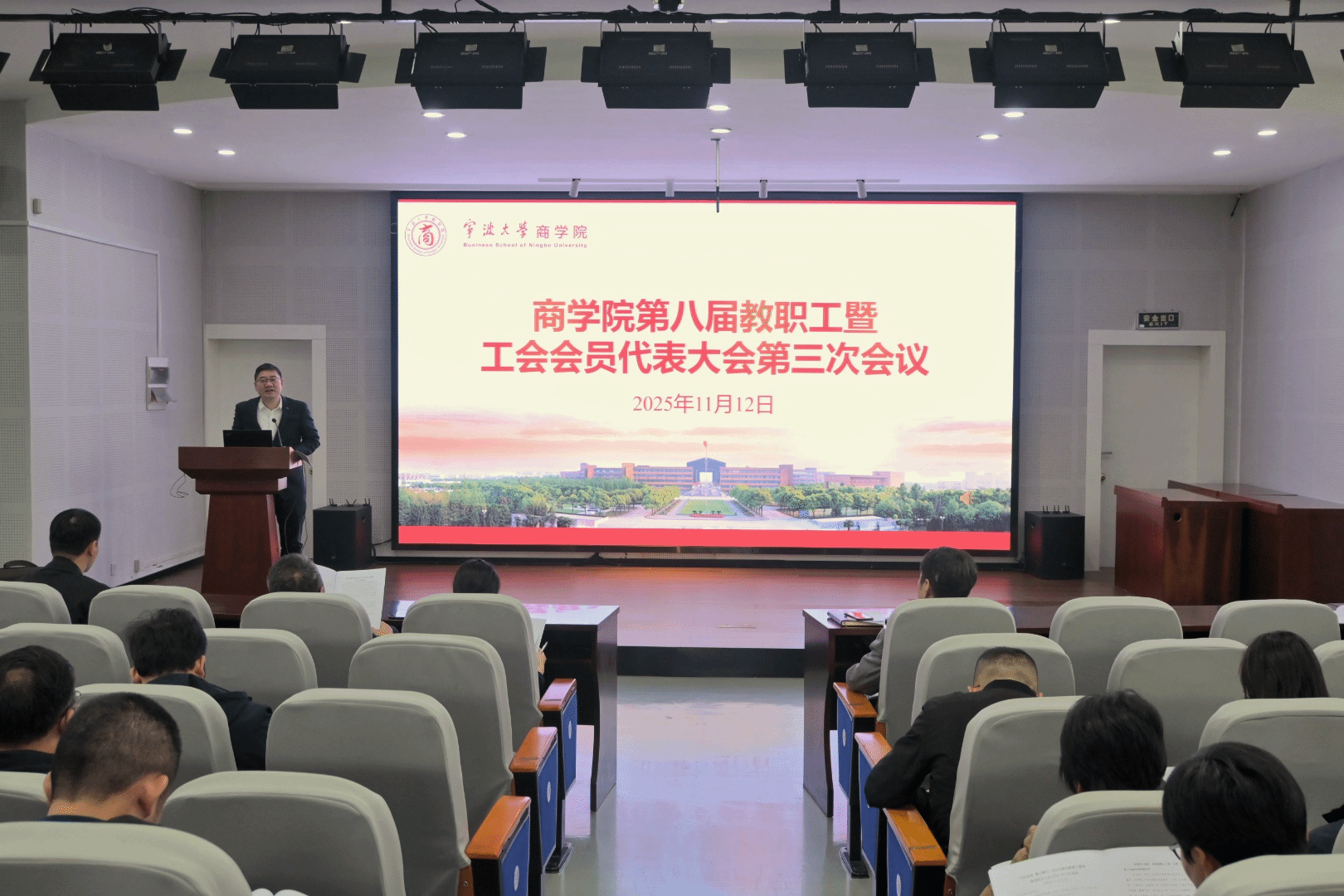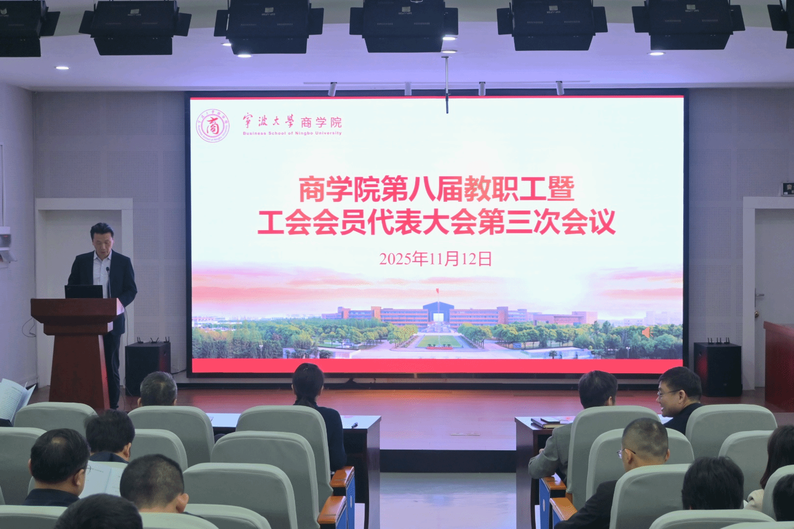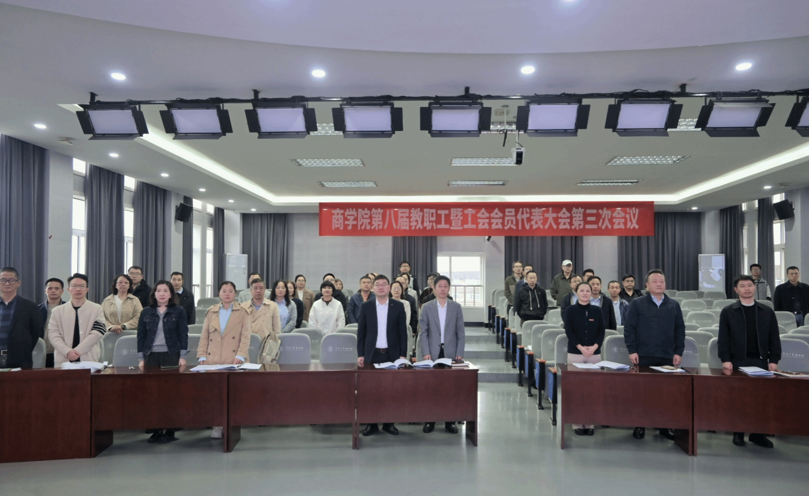 经学院党委同意并报请学校工会, 91沈先生 第八届教职工代表大会暨工会会员代表大会第三次会议于11月12日下午在 91沈先生 501报告厅举行。会议由院分工会主席朱一鸿主持,学院党委全体委员和教职工代表、工会会员代表参加了会议。