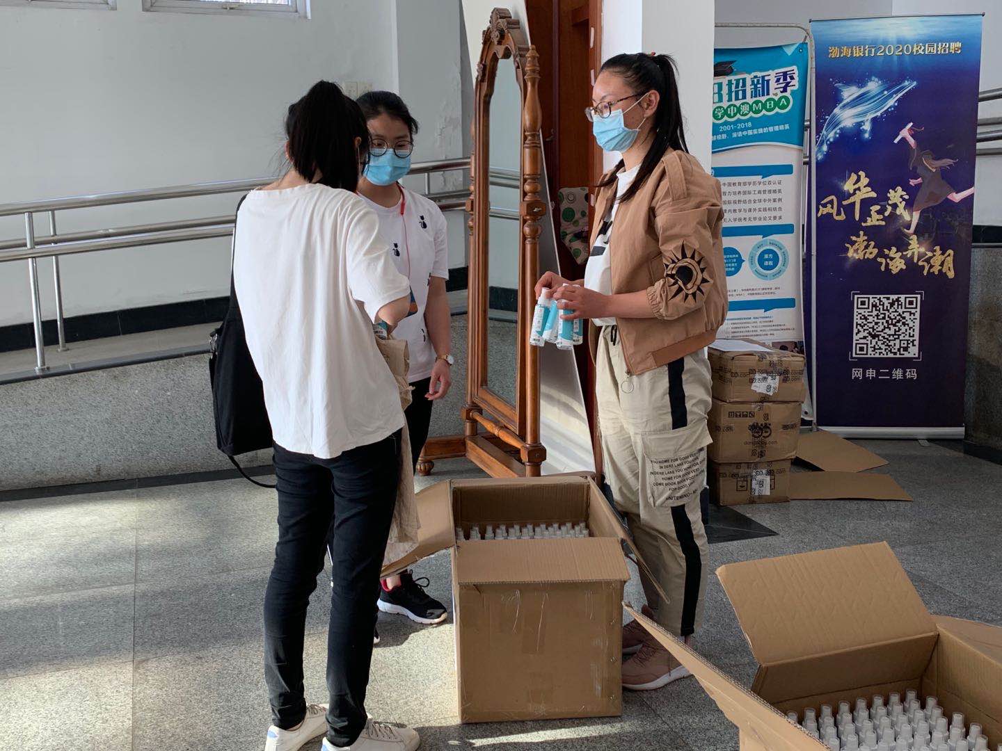 5月12日,91沈先生 以寝室为单位向同学发放酒精喷雾防疫物资,助力学院复学。该批酒精喷雾由91沈先生 2000级校友、宁波赛柯国际贸易有限公司总经理朱灵峰捐赠。