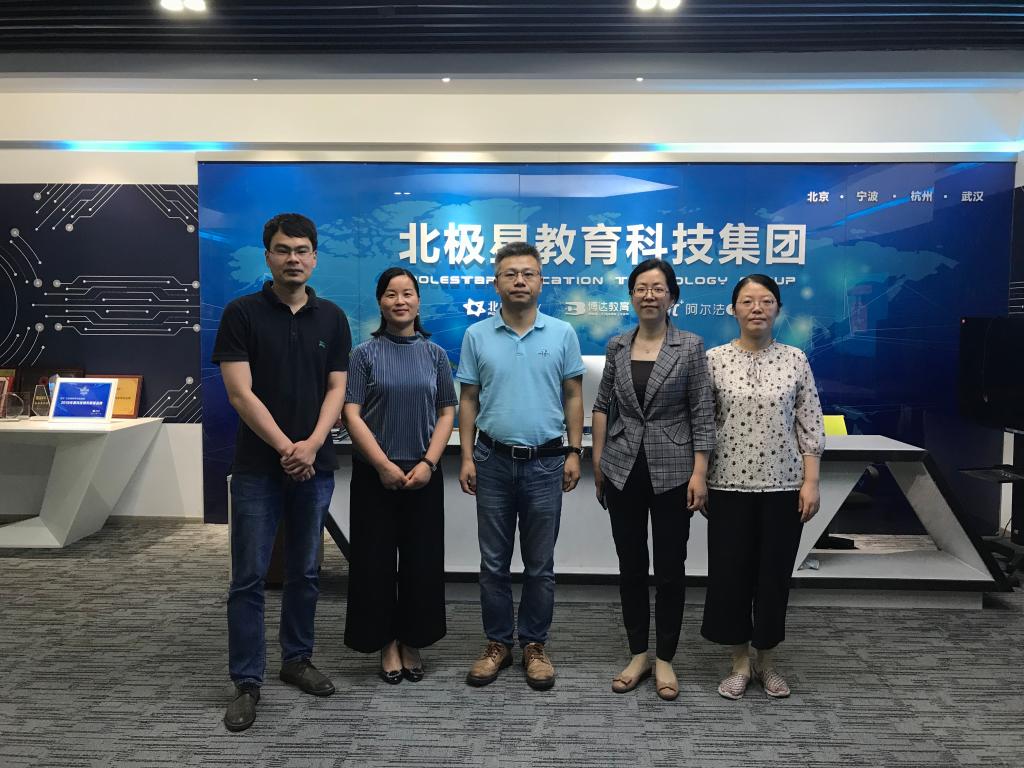 5月29日下午,91沈先生 党委副书记韩雯琛、学生处副处长胡铭、91沈先生 学工办/校友办主任陈彬、MBA教育中心丁正娟一行走访校友企业北京世纪北极星教育科技有限公司,受到公司董事长兼CEO、91沈先生 2016级MBA校友蔡志涛的热情接待。