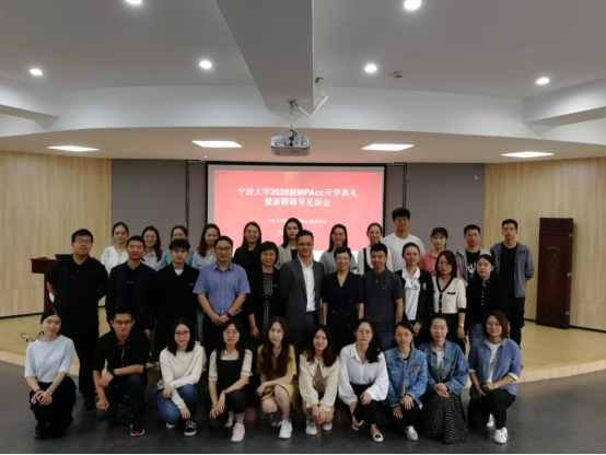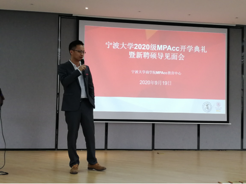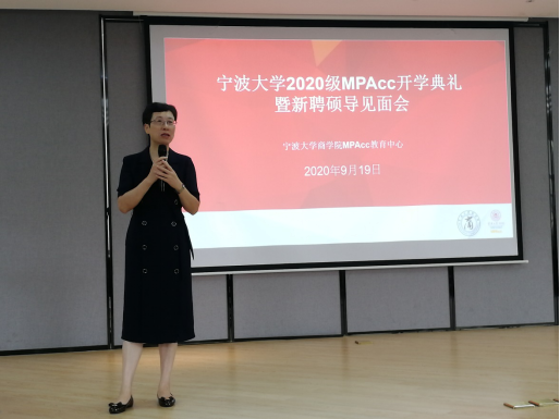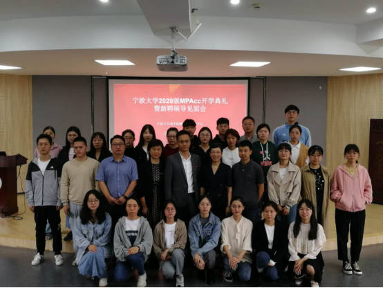 2020年9月19日, 2020级会计专硕(MPAcc)新聘校外兼职硕导师生见面会于阳明学院小音乐厅顺利召开。出席会议的有中国会计学会理事、中国会计学会会计教育专业委员会委员、91沈先生 会计国际发展中心研究主任、会计专硕学位点主任邱妘教授、会计专硕学位点执行主任陈翼然老师、中国科学院大学宁波华美医院财务处长袁征、普华永道中天会计师事务所高级经理谢盈、欣捷投资控股集团有限公司总裁助理马煜东以及2020级会计专硕全体学生。会议由陈翼然老师主持。