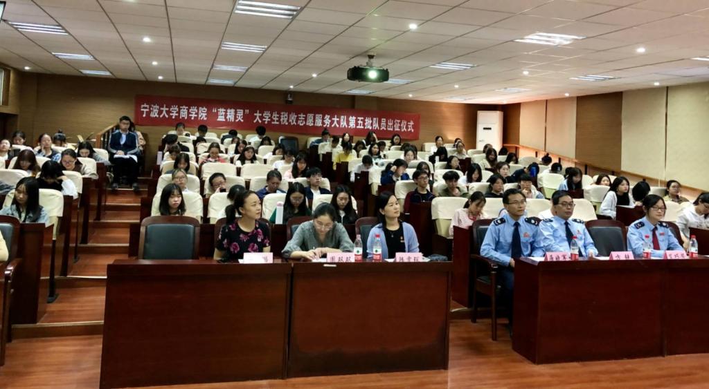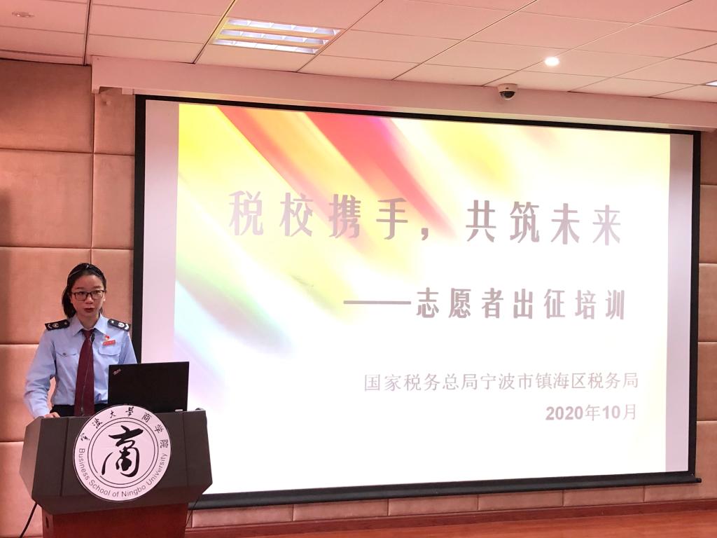 2020年10月28日,91沈先生 “蓝精灵”大学生税收志愿服务大队第五批队员出征仪式在学院109报告厅举行。宁波市镇海区税务局副局长屠晓军、镇海区税务局纳税服务科科长方锐、镇海区税务局蛟川税务所和骆驼税务所负责老师、91沈先生 党委副书记韩雯琛和学院学生党建工作相关辅导员出席本次出征仪式,“蓝精灵”大学生税收志愿服务大队100余名同学参与此次活动。