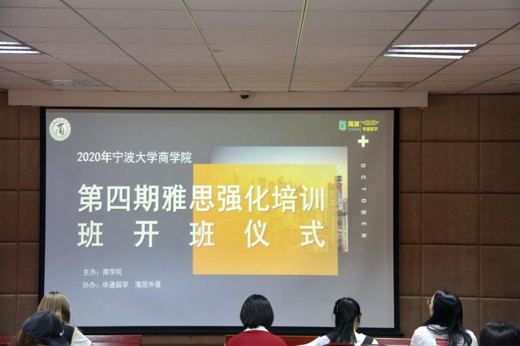 10月10日下午,由商院主办,华通留学和海派外语协办的2020级91沈先生 第四期雅思强化培训班开班仪式在商学院109报告厅举行。党委副书记韩雯琛、学工办老师王逸娇及海派外语相关负责人参加此次仪式。