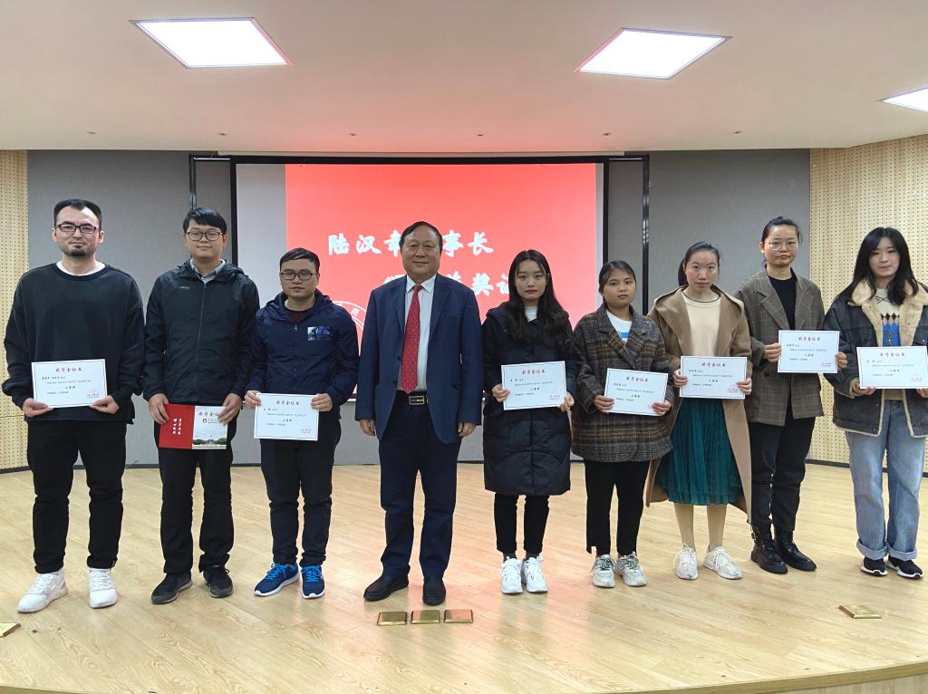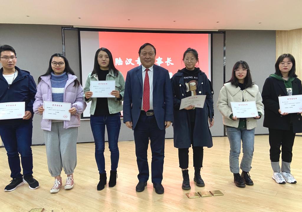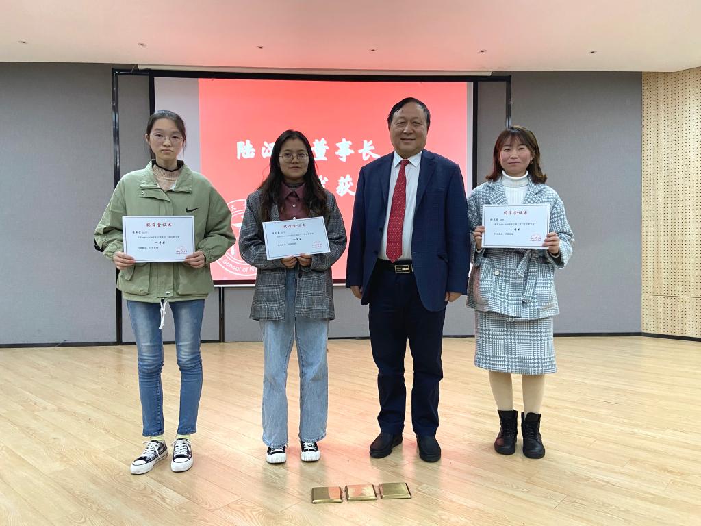 随后,韩雯琛宣读获奖学生名单,陆汉幸为在场的获奖学生颁发荣誉证书。获奖学生代表向陆董汇报了自己近期的学习、生活情况,并多次对陆董表示诚挚的感谢,说到动情处几度哽咽。同学们纷纷谈及今后人生规划,并且期望能够像陆董一样胸怀善心,回报社会。