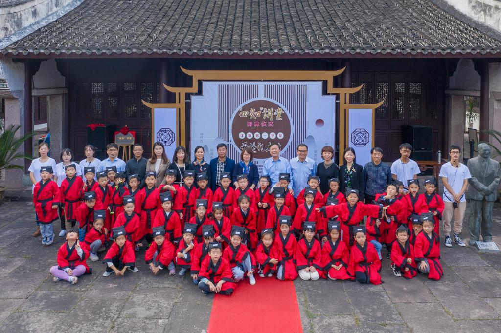 首先,在镇海实验小学学生声情并茂的《三字经》朗诵声中,正式开启了“四知”讲堂揭牌仪式。