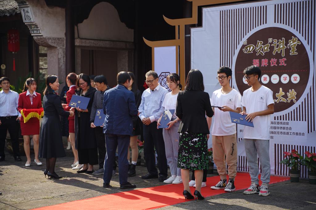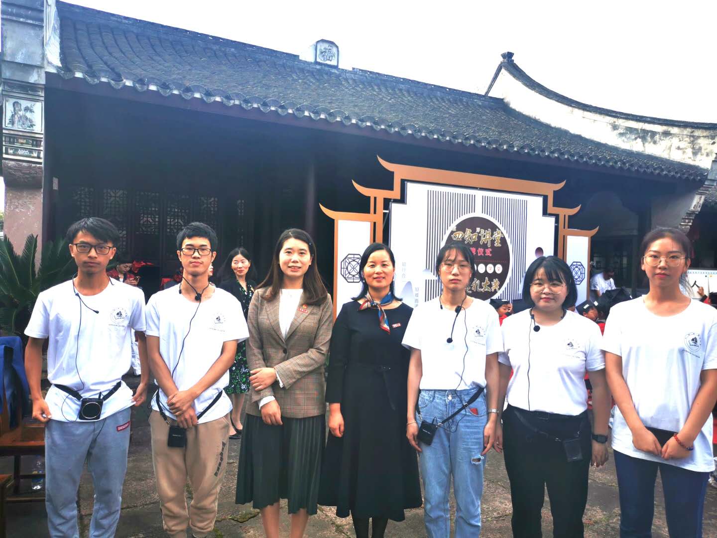 10月27日下午, 91沈先生 与镇海庄市街道共同承办的“四知”讲堂揭牌仪式暨文“话”商帮宣讲团启动仪式在庄市街道江南第一学堂举行, 91沈先生 党委副书记韩雯琛、院分团委副书记章舒怡出席,7名 91沈先生 文“话”商帮宣讲团的同学参加了此次活动。