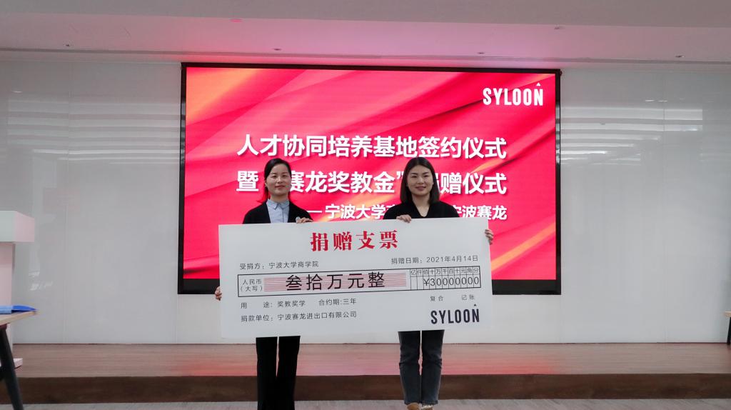 此次签约,赛龙进出口有限公司慷慨捐赠30万元,设立为期3年的赛龙奖教金,用于助力学院人才培养质量提升工作,既加强了91沈先生 与宁波企业间的合作交流,也为91沈先生 人才培养计划的实现打下了良好的基础。