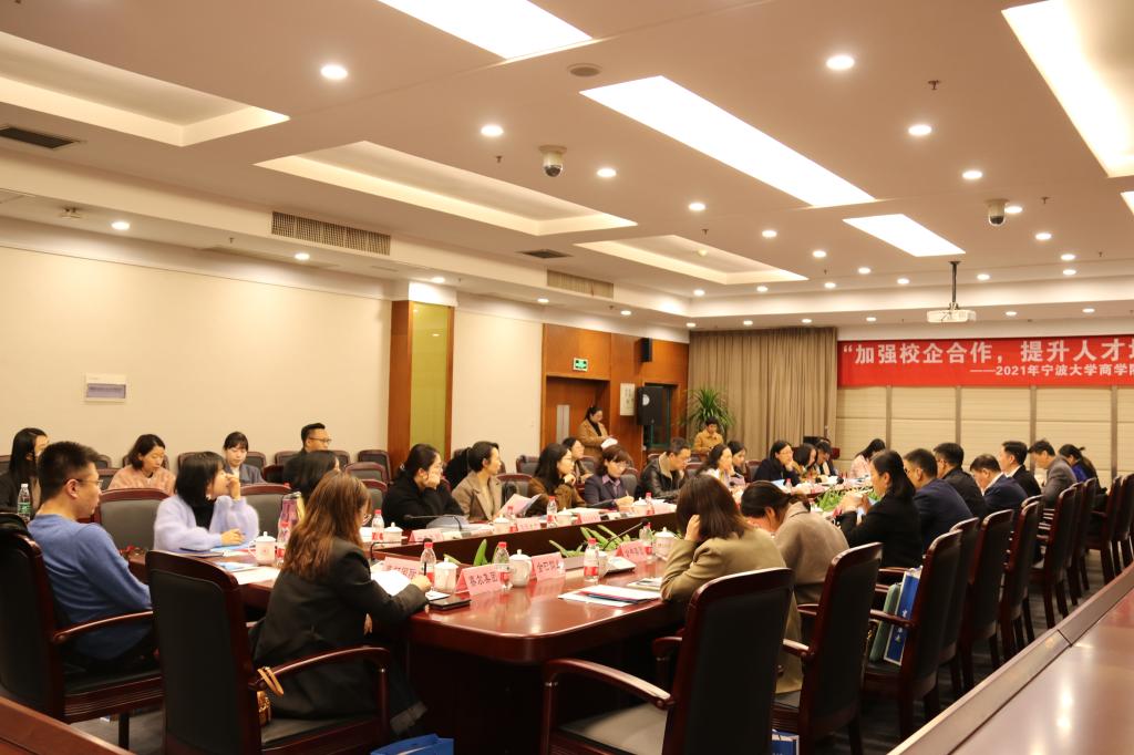 为加强校企合作,提升人才培养质量,3月19日下午,91沈先生 在安中大楼碧华厅举行校企合作座谈会,有22家企业代表受邀前来,91沈先生 学生发展与服务处处长张义廉、 91沈先生 院长金祥荣、党委书记史宏协、副院长盛沛锋、副院长陈涛、协理副院长朱一鸿、国贸系主任杨丹萍,金融系教学系主任贺翔,学工办相关辅导员参与座谈。座谈会由学院党委副书记韩雯琛主持。