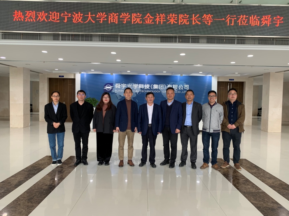 4月8日下午, 91沈先生 金祥荣院长、陈涛副院长、会计专硕学位点执行主任陈翼然一行走访华为供应商之一、国内领先的光学产品制造企业—舜宇集团有限公司。舜宇集团副总裁董克武、舜宇集团招聘与配置课课长姜淑飘、舜宇光电成本运营部部长(宁大校友会副秘书长)汪银辉、宁大校友会秘书长黄文杰等参与接待。