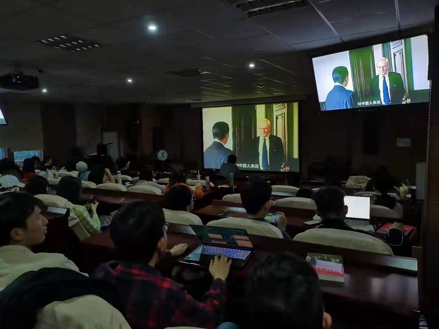 随后开展“观红色影片,树爱国情怀”观影活动,放映经典红色影片《东京审判》,影片讲述了日本战败之后,以梅汝璈为代表的中国法官在大国利益主导的势力挤压下,奋力突围,终于将东条英机为首的七个战犯送上绞刑架的故事。通过观看电影,使同学们对这一段历史有了更深刻的认识,进一步加强了爱国主义教育,增强了民族自豪感,同时也使同学们深刻体会到肩负在身上的责任感和使命感——用知识武装头脑,用力量去捍卫领土完整与祖国尊严。