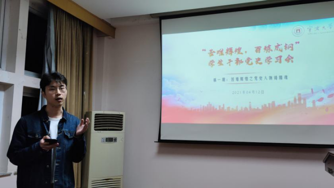 4月12日,91沈先生 研究生会在11号楼418举办“青春心向党 奋斗新征程”庆祝建党100周年主题教育系列活动之“苦难辉煌,百炼成钢”学生干部党史学习分享会第一期。本次学习会由91沈先生 研会执行主席王佳音主持,研会全体学生干部参加本次活动。