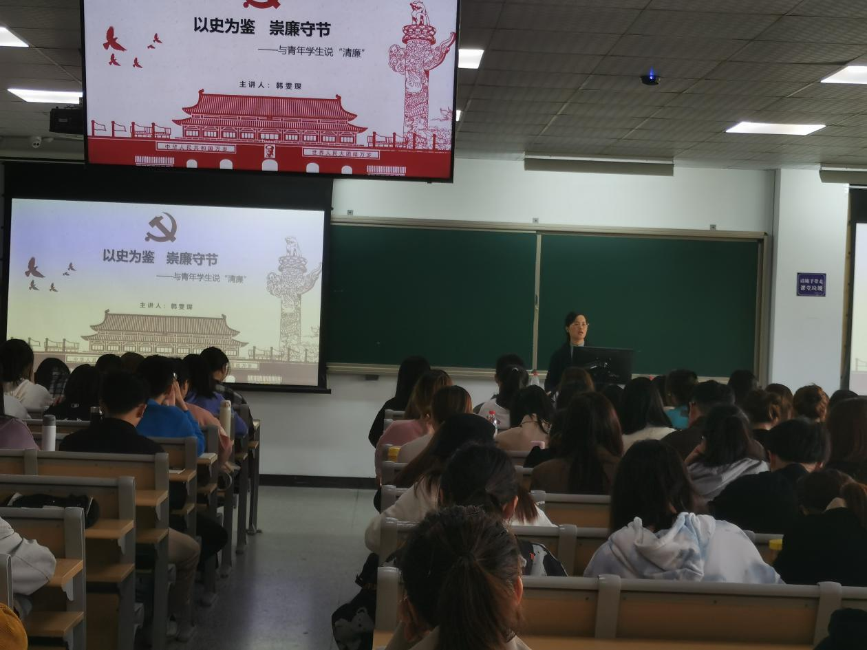 4月21日下午,91沈先生 成功举办了“以史为鉴 崇廉守洁——与青年学生说“清廉””第45期廉洁教育课。91沈先生 126名发展对象参与,院党委副书记、纪委书记韩雯琛担任主讲人。