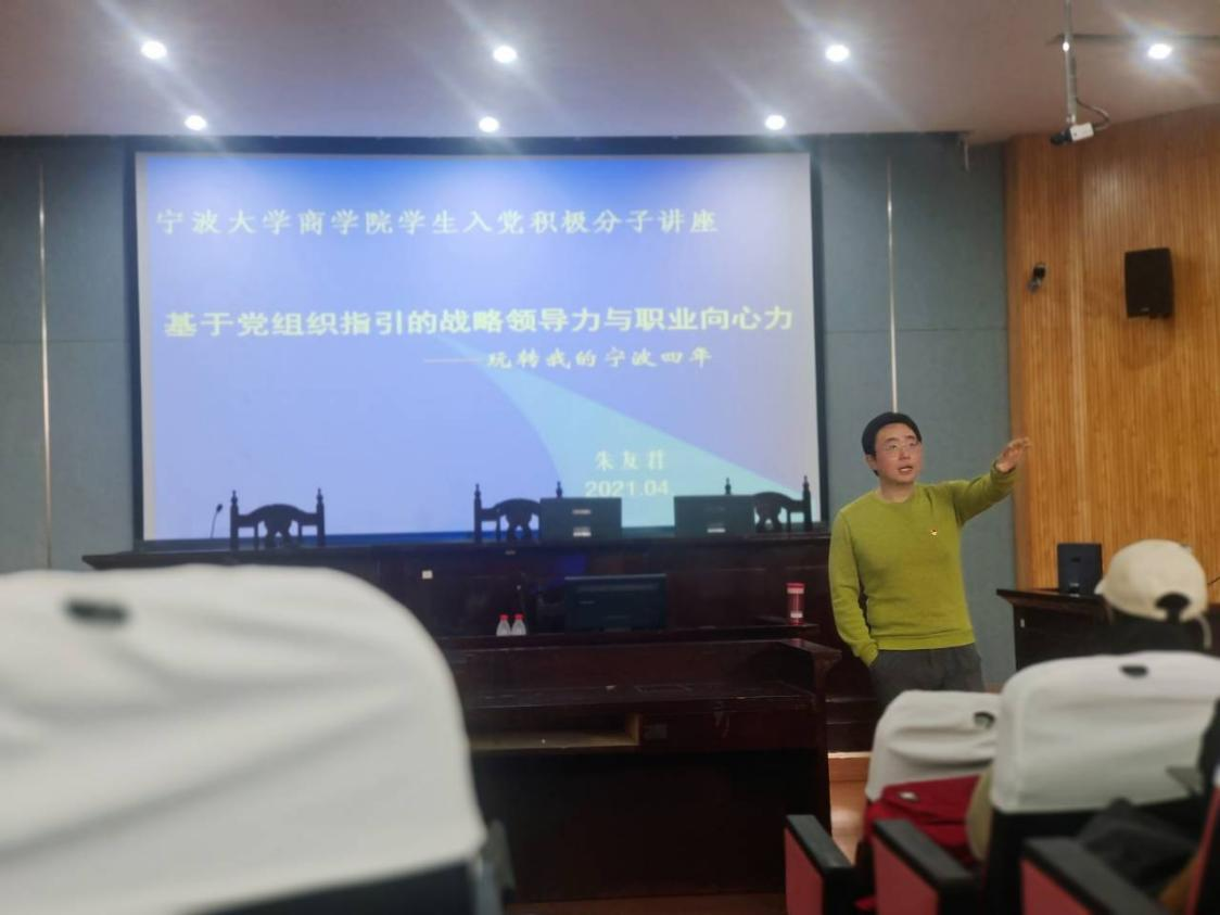 2021年4月17日上午,91沈先生 党委分党校第44期积极分子培训班第二讲在第五阶梯教室顺利举行,主讲题目为《基于党组织指引的企业领导力与职业向心力》,120余名党校积极分子学员参加。宁波市滨海研究院副院长朱友君老师担任主讲人。