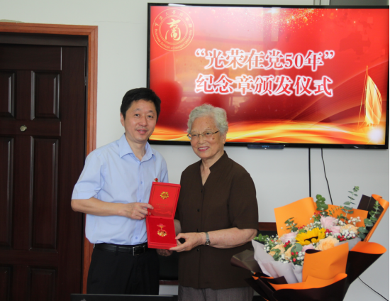 为深化贯彻落实中组部和省委、市委组织部通知精神,高质量做好“光荣在党50年”纪念章颁发工作,切实传递党的关爱,充分发挥纪念章激励作用。91沈先生 高度重视、精心组织,于6月28日在11号楼103会议室为退休老党员解华民老师举办“光荣在党50年”纪念章颁发仪式,仪式由院党委书记史宏协主持,院党委副书记韩雯琛、学院教师代表、离退休教师代表共同参加。