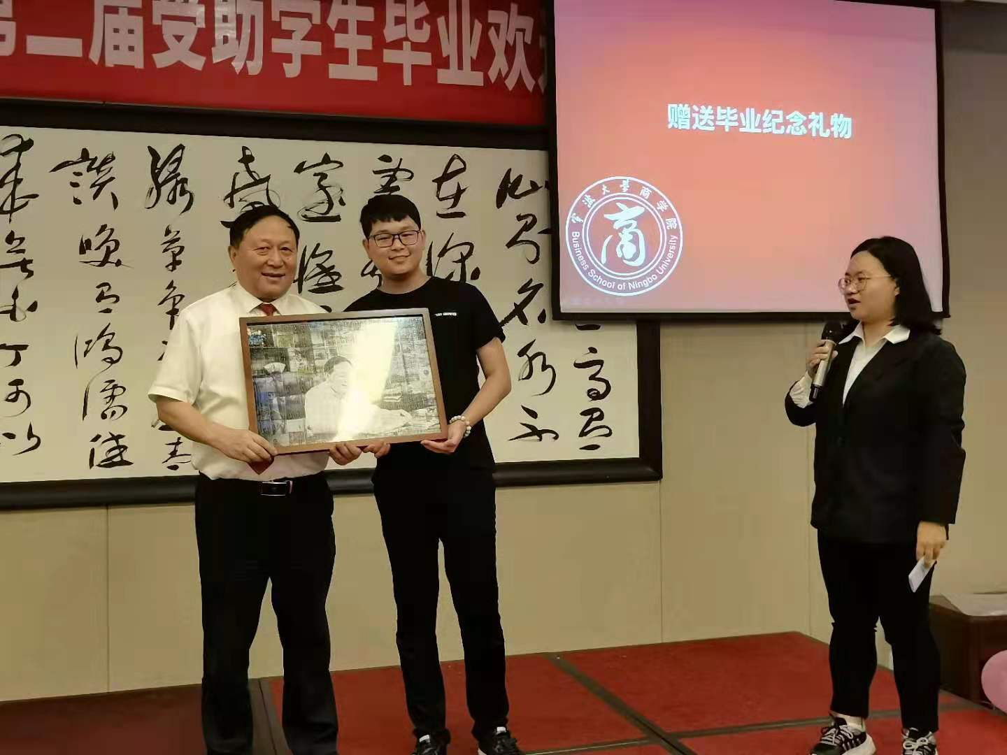送别会伊始,“宏达奖助学金”捐赠者陆汉幸先后与“宏达奖助学金”本科生毕业生、研究生毕业生合影,拍照现场洋溢着欢乐的气氛。