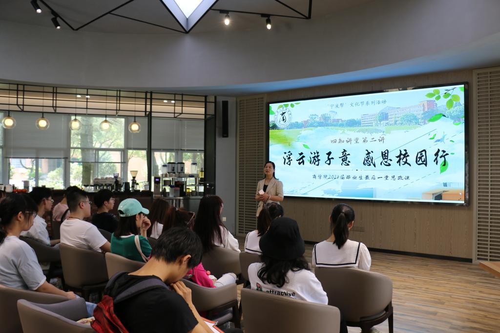 为切实做好毕业生感恩教育工作,上好毕业生在宁大的“最后一堂思政课”,6月23日,91沈先生 国贸经济团队组织经济系、国贸系的毕业班同学开展“浮云游子意,感恩校园行”毕业生最后一堂思政课暨“宁波帮”文化节四知讲堂第二讲活动。院党委副书记韩雯琛、毕业班班主任、带班辅导员和国贸经济团队50余位毕业生共同参与了本次活动。