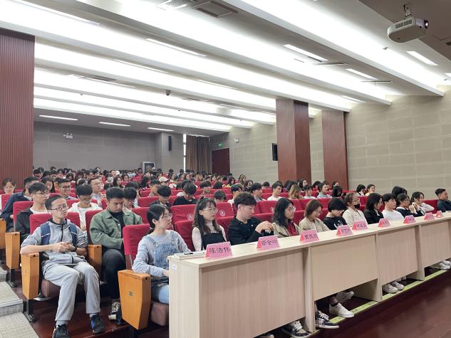 为加强升学信息交流,培育升学良好风气,5月19日下午,国际经济与贸易系升学交流会暨专业模块分流说明会在宁波高等技术研究院报告厅成功开展。院长金祥荣、党委副书记韩雯琛、系主任杨丹萍、教学系主任丛海彬、国际贸易所所长杨丽华、17国贸班主任周艳、国贸系老师施晟、伍湘陵、17国贸辅导员陈彬、章舒怡、以及18、19级国贸百余名学生参加了此次交流会。