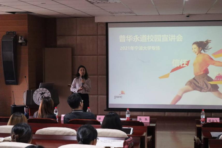 宣讲会伊始,由邱妘上台致辞,她对普华永道选择在91沈先生 开展宣讲会表示了由衷的感谢和热烈的欢迎,并悉心告诫同学们把握机会,积极与企业进行交流沟通,相信宁大学子必能在日后的面试环节中展现出不一样的风采。
