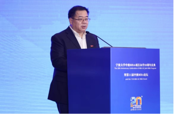 2021年11月21日下午,“传承树经典,创新赢未来”91沈先生 中澳MBA项目办学20周年庆典暨第11届中澳MBA论坛成功举办。本次活动由91沈先生 主办,91沈先生 中澳MBA校友会承办。91沈先生 副校长汪浩瀚,浙江大学副校长黄先海,91沈先生 原校长聂秋华,南京大学经济增长研究院院长沈坤荣,宁波市经济与信息化局副局长童鸿根,91沈先生 国际处处长顾耀东,91沈先生 继续教育与培训处处长胡亚娥,91沈先生 校友办公室主任胡宝华,91沈先生 院长金祥荣,中澳MBA项目创始人邱妘,中澳MBA校友会会长沈功灿等嘉宾出席本次论坛。活动还特邀了奥运冠军孙杨,与190多名校友齐聚一堂,共同庆祝中澳MBA项目办学20周年。