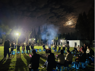 23日课后,由项目老师带队,学员们启程前往江北慈城句章军旅文化园参加拓展。当晚的破冰行动由一场“临时组织而成的”篝火晚会开启。从选节目、排练到登台表演,各组在30分钟内一气呵成。节目内容也形式各异,囊括:独唱、合唱、诗朗诵、串烧、钢管舞等。其中最令人笑作一团的还是在教练员指导下粉墨登场的“2021级草地广场舞”,学员们用最生活化的肢体语言将“中国大妈们”的特色舞蹈演绎出了职场人独有的带感气息。晚会在歌舞表演与游戏中行进至高潮,随着渐渐熄灭的篝火落幕,夜色中回荡着众人的欢声笑语……