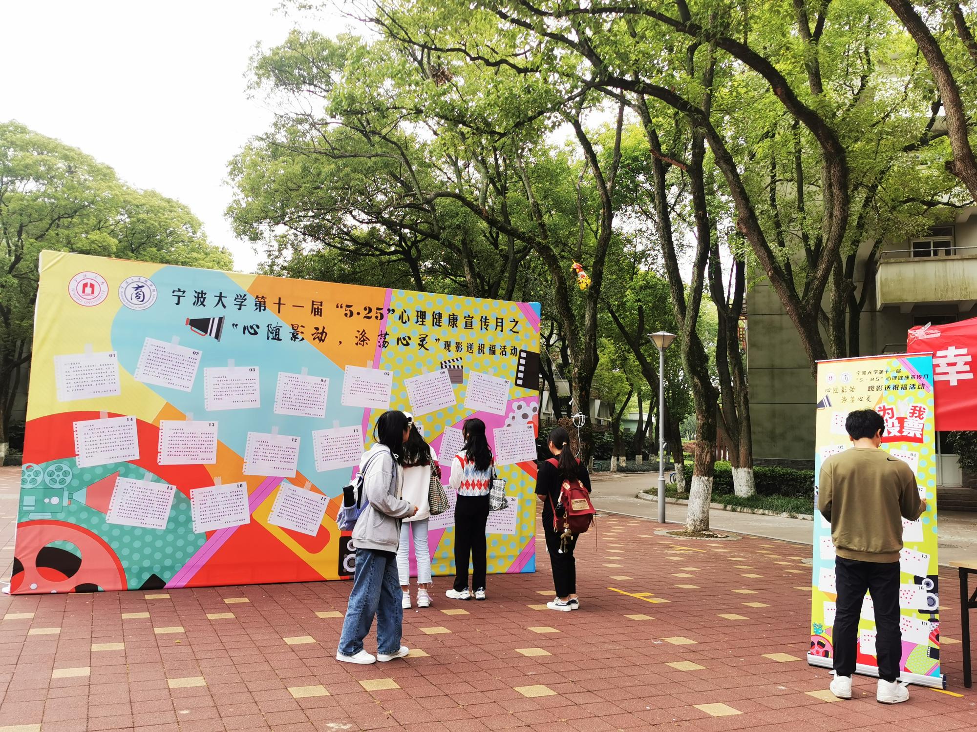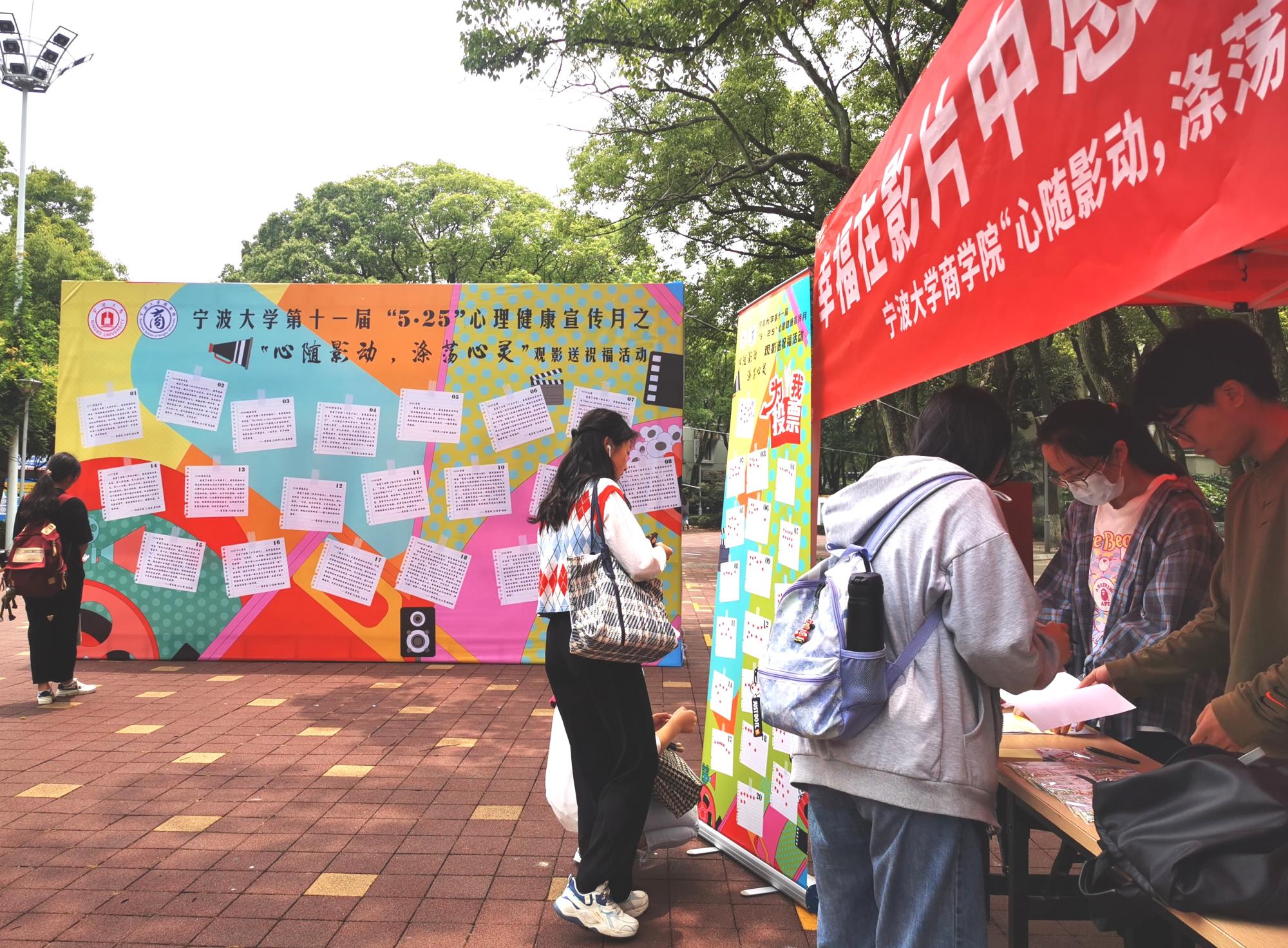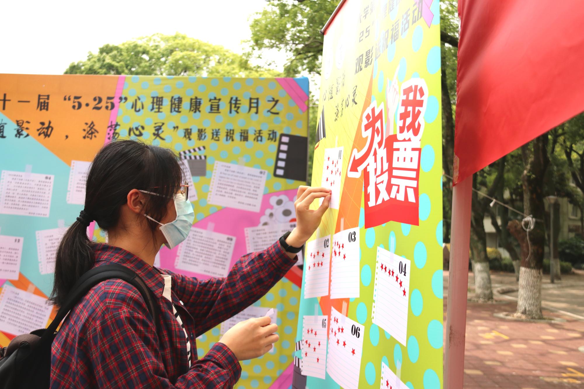 5月25日,为给学生办些实事,对学生进行心理健康教育。91沈先生 在有思广场顺利开展“心随影动,涤荡心灵”大学生心理健康观影祝福语线下投票活动,吸引了近百名同学现场参加。