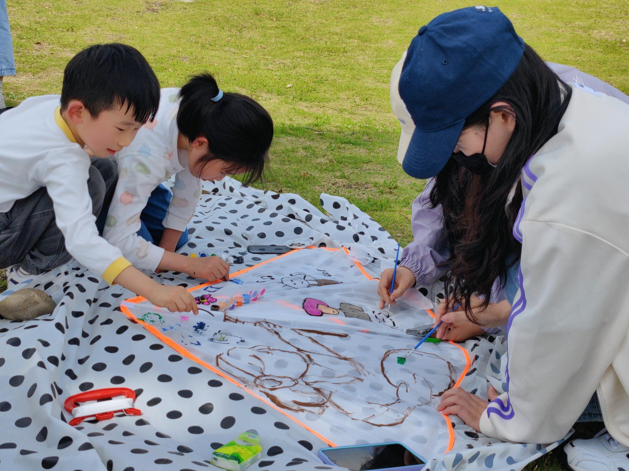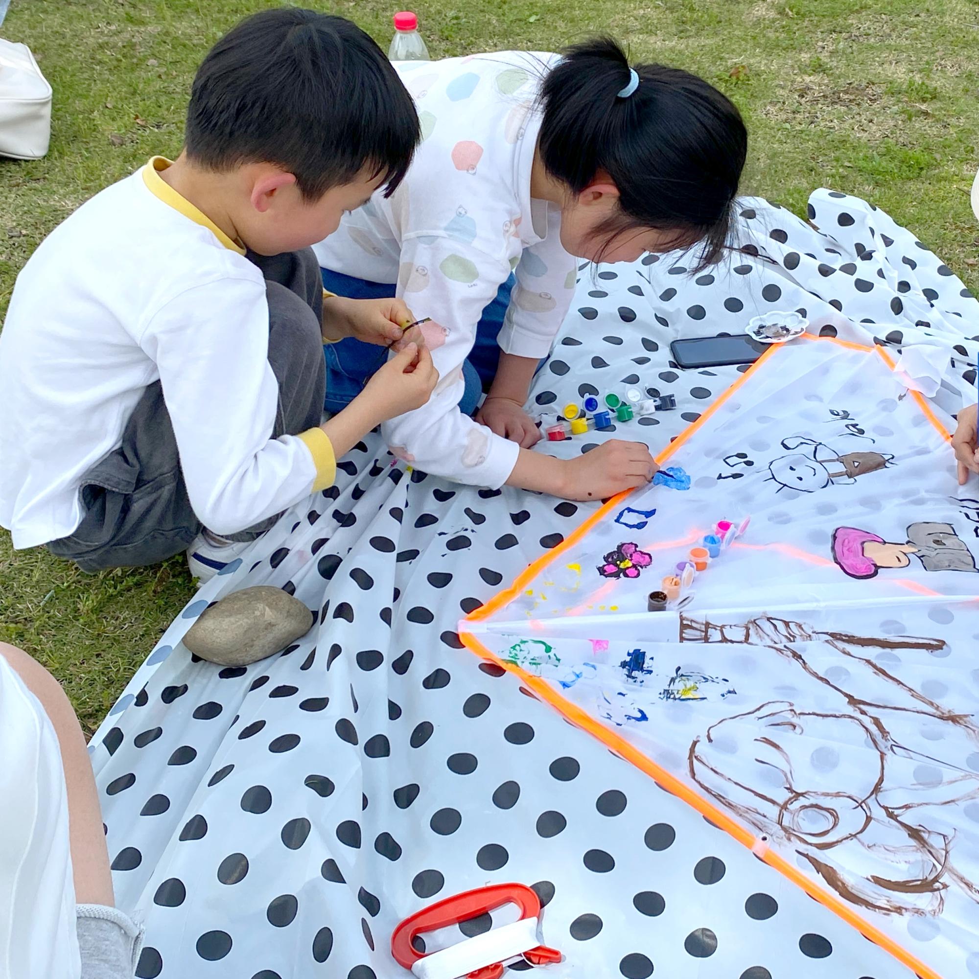 经过紧张的设计和绘画环节,同学们带着自己的作品,开始了放风筝的环节。奔跑、展翅、放飞,大草坪上传来阵阵欢声笑语。
