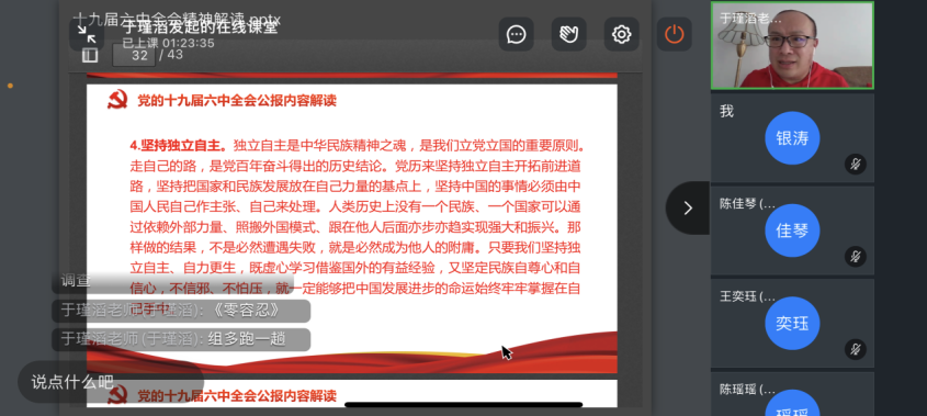 4月20日,91沈先生 党委分党校第46期预备党员培训班于线上举办了主题为《十九届六中全会精神解读》和《共同富裕》的党校课程。本次党课分别邀请会计系教师于瑾滔和经济系教师余璇担任主讲老师,学院第46期预备党员培训班全体学员参加。