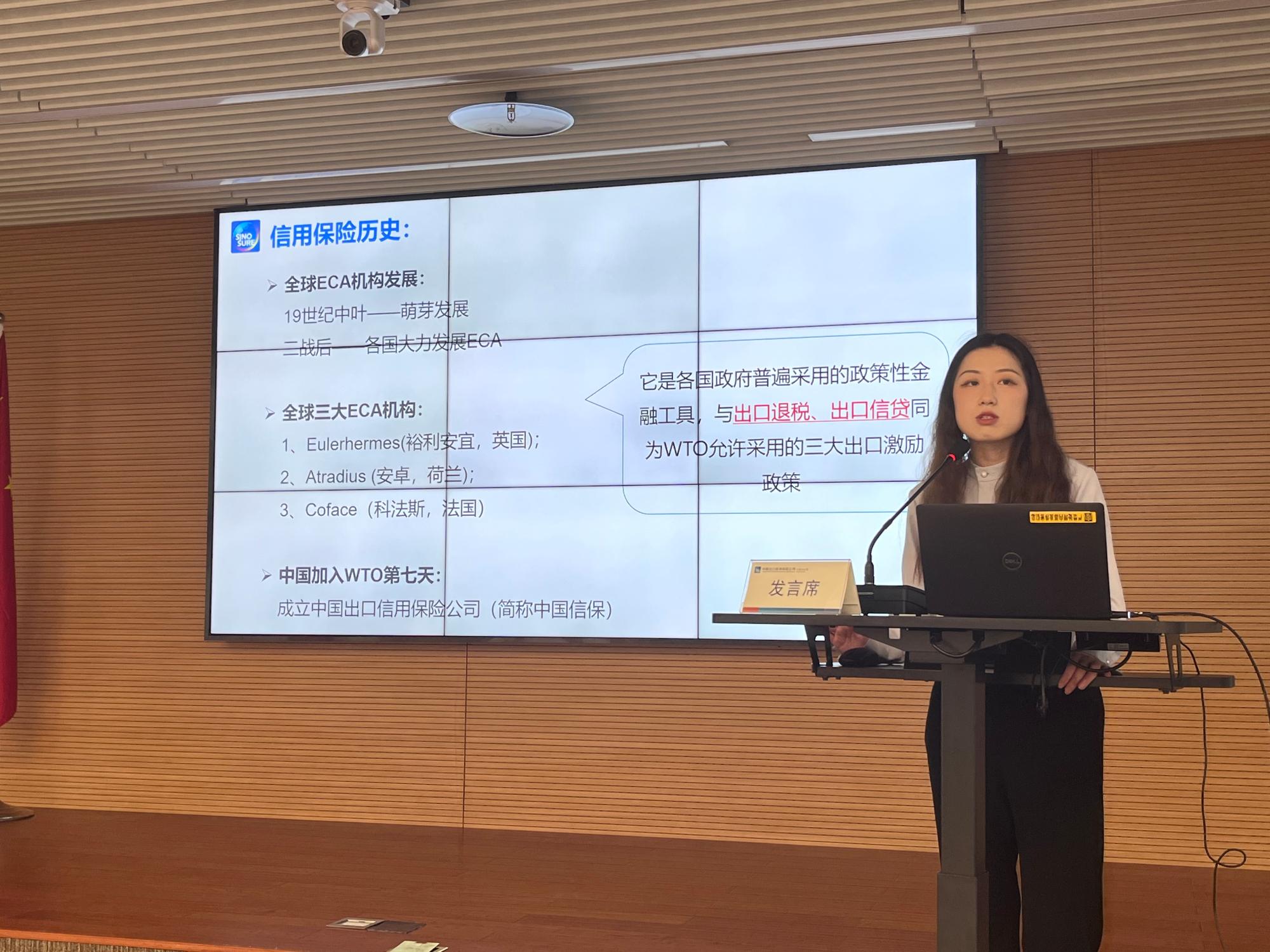 首先,余林建经理介绍了中国出口信用保险宁波分公司在外贸行业的重大地位,深得企业的信赖;随后朱一鸿老师介绍91沈先生 教师团队、专业、学生的基本情况,同时提议在跨境电商专业的微专业人才协同培养上可以进行深入的合作,得到了企业方的认可与支持;最后2015级金融专业校友王诗璎为大家全面介绍了中国出口信用保险宁波分公司的企业发展历程与91沈先生。