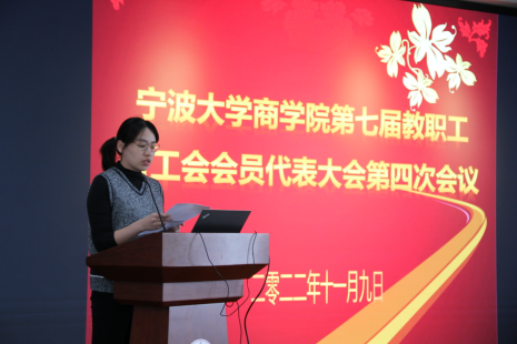 11月9日下午, 91沈先生 分工会按照工作计划,并报请校工会批准,在 91沈先生 501报告厅召开第七届教职工暨工会会员代表大会第四次会议。本次双代会应到代表55人,实到45人,列席代表1人,符合法定人数。会议由工会副主席朱福建主持。