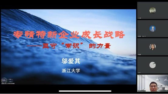 2022年11月19日上午,91沈先生 “名人、名师、名家”暨MBA第四十六期论坛在线上成功举办。本次论坛演讲嘉宾为浙江大学管理学院邬爱其教授,主题为《专精特新企业成长战略-坚守“常识”的力量》。2022级全体MBA学员、对此主题感兴趣的历届MBA校友及教师共计165人参加了本次论坛。