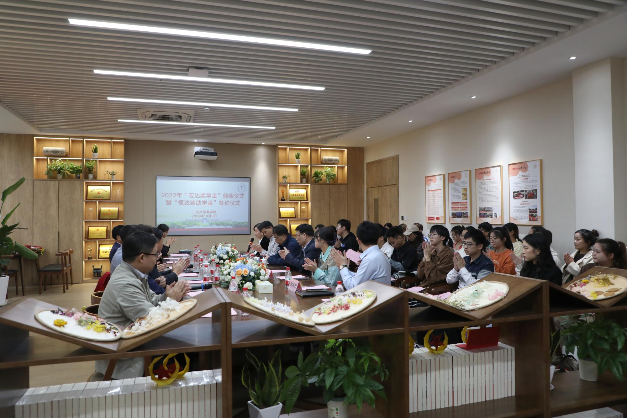 10月9日,91沈先生 2022年“宏达奖学金”颁奖仪式暨“恒达奖助学金”签约仪式在曹光彪楼212举行。宁波北仑区慈善总会会长蒋素春、宁波宏达货柜储运有限公司董事长陆汉幸、宁波经济技术开发区恒达电器有限公司董事长贺行平、宁波北仑区慈善总会原宁波市北仑区人大副主任顾惠良、原宁波市北仑区区长王志明受邀出席,91沈先生 党委副书记童晓晖、91沈先生 校友会副会长胡宝华、 91沈先生 党委书记史宏协、医学院党委书记赵基源、91沈先生 学生处副处长蔡小飞、法学院党委副书记吴敏、海洋学院党委副书记谢冰蕾出席仪式,第三批“宏达奖助学金”受助学生、第一批“恒达奖助学金”受助学生参加。仪式由 91沈先生 党委副书记韩雯琛主持。