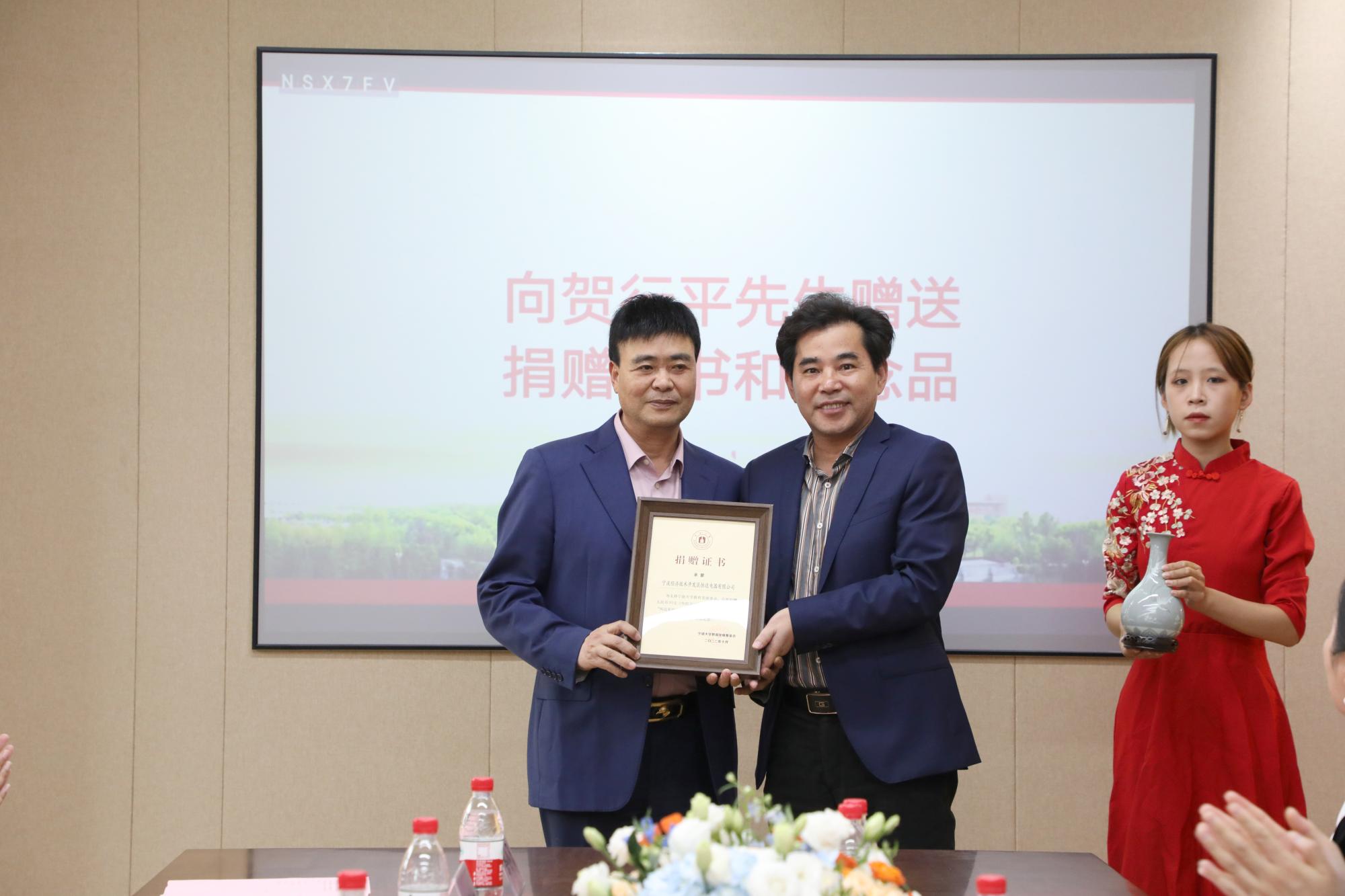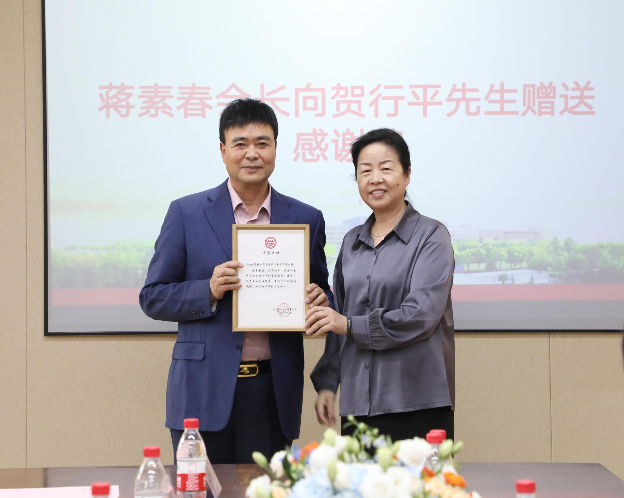 在这之后,蒋素春会长、贺行平先生、史宏协书记签订91沈先生 “恒达奖助学金”捐赠协议书,为商院学子送来了别样的温暖。蒋素春会长、胡宝华副会长、史宏协书记分别向贺行平先生赠送感谢牌、捐赠证书和纪念品来表示对贺行平先生的衷心感谢。