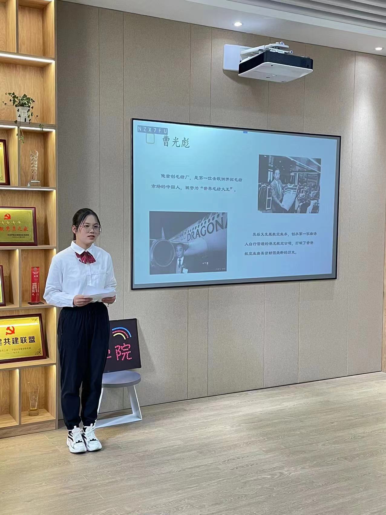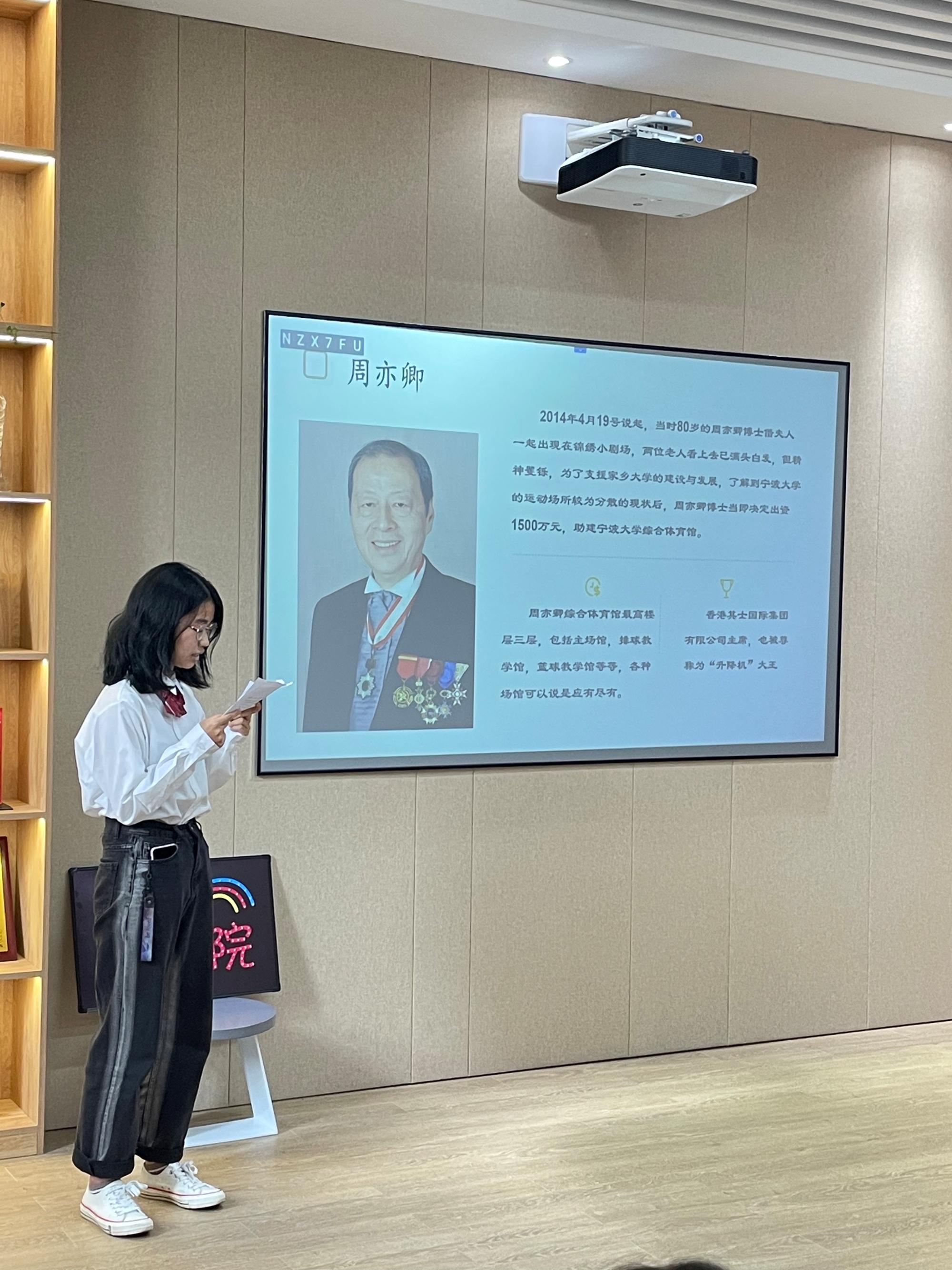 活动还设置了新生访谈环节,问及新生们入学时印象最深刻的楼宇时,他们纷纷提到了曹光彪科技楼,因为这是 91沈先生 所在的楼宇,一楼大厅中的曹光彪先生铜像也令他们心生敬意。活动中,同学们也表示更加了解曹光彪先生的平身事迹以及与宁大的渊源。在未来在宁大的学习中,新生们将进一步去了解宁波帮的故事,传承宁波帮精神。