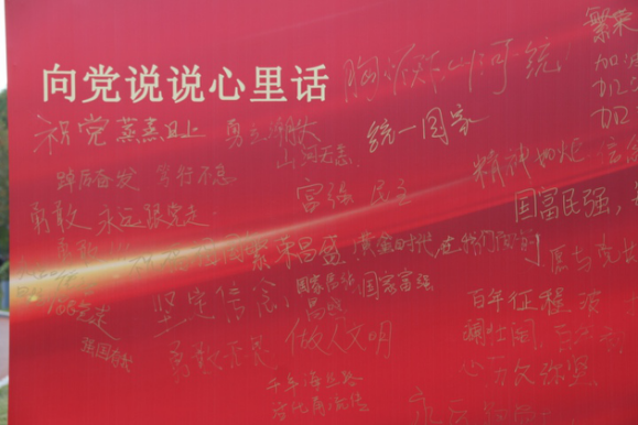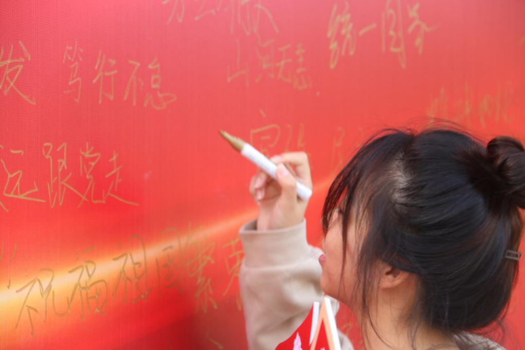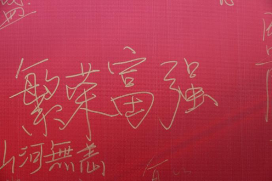 比赛开始前,大家在背景板上写下了自己的心愿,用笔墨传达了自己对祖国的美好祝愿。