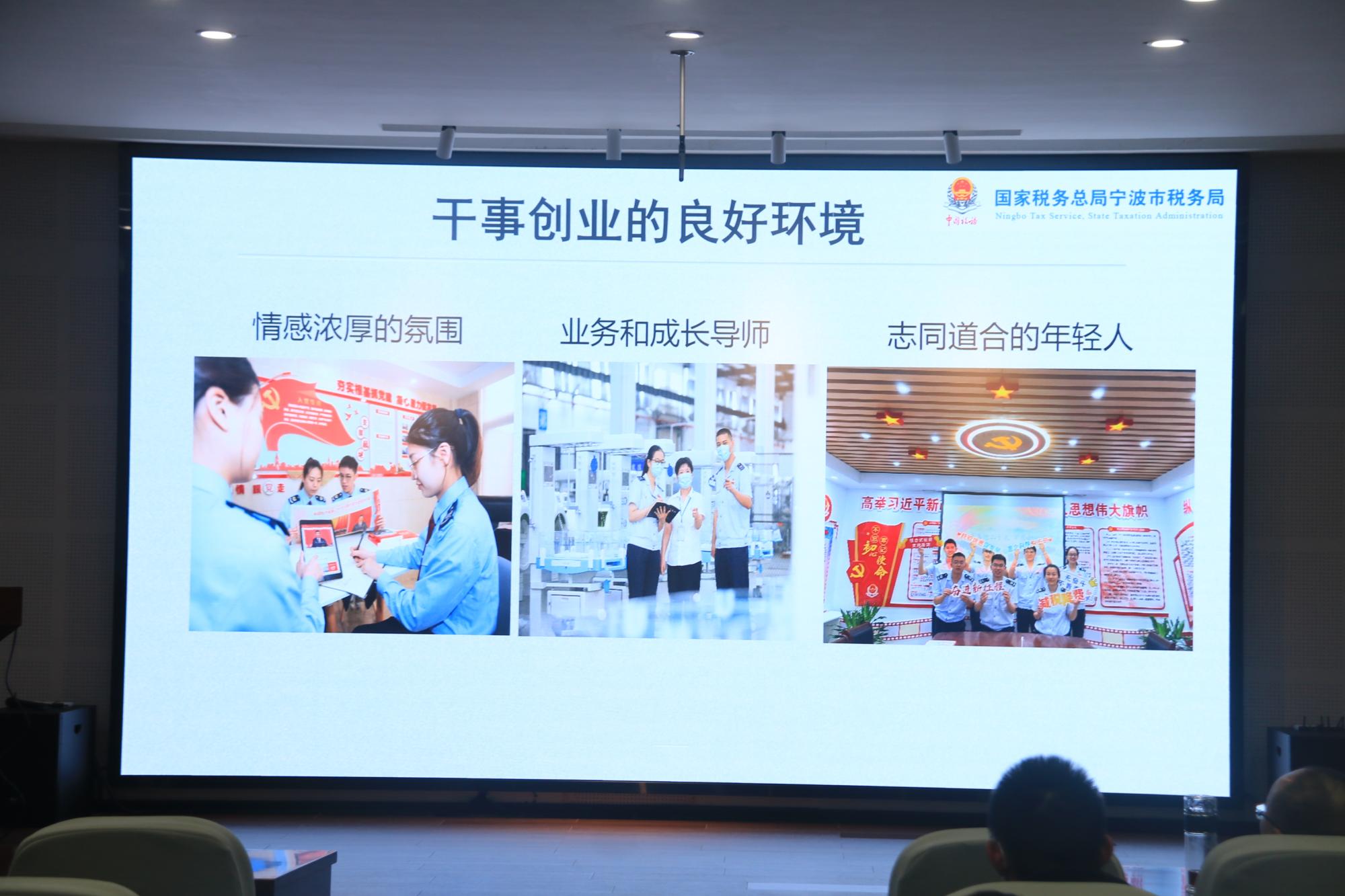 最后,象山县税务局石浦税务所副所长马泰坤从干事创业的良好环境、干事创业的表现舞台以及非凡的成就感和获得感三个角度全面介绍了宁波税务。