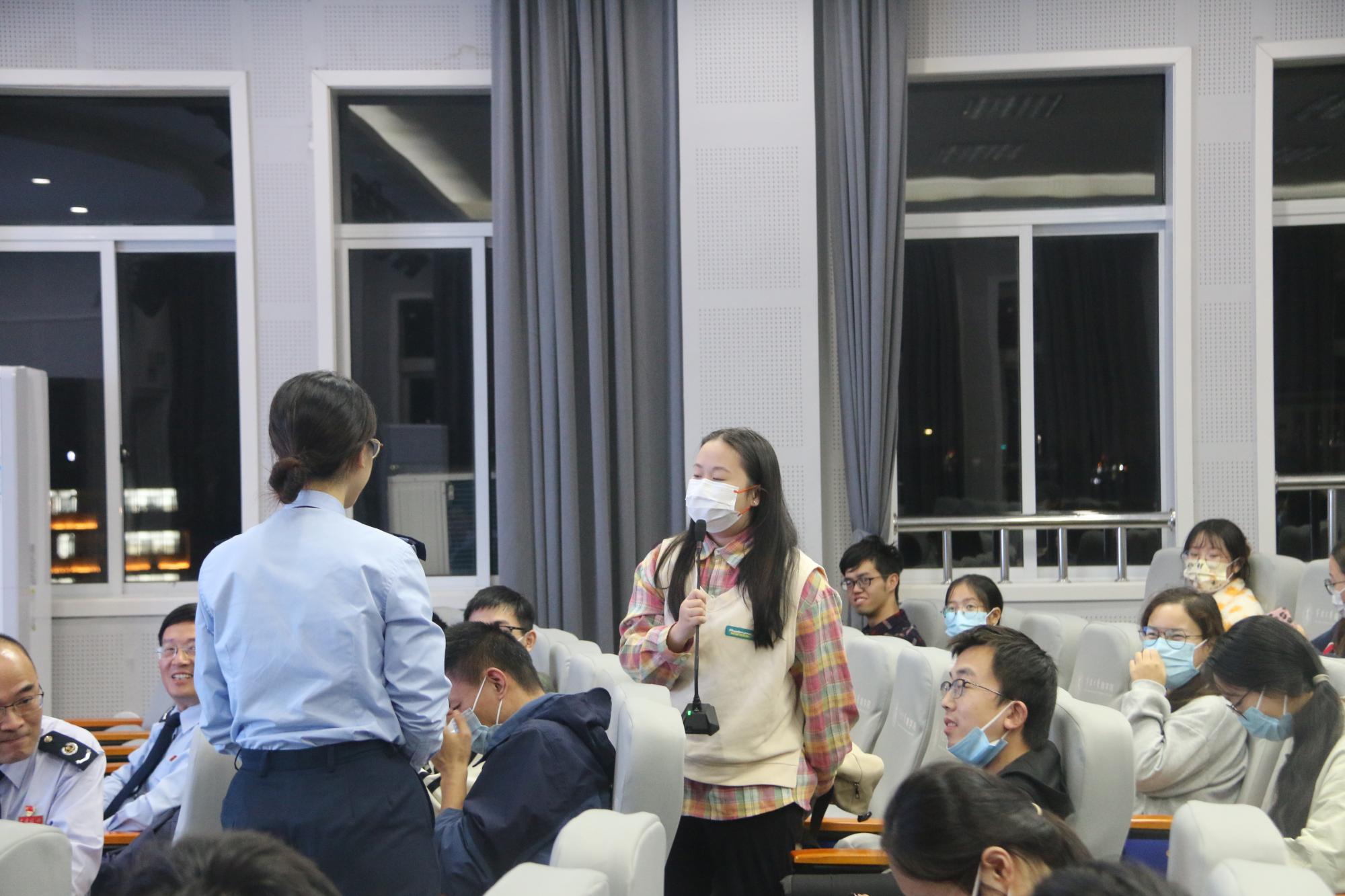 互动答疑环节,同学们就考试考核、薪资福利、税务机构、试用期、面试准备等方面进行积极提问,与会工作人员对同学们提出的问题进行了详细解答,现场氛围踊跃。