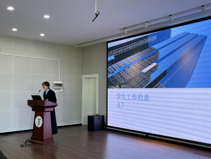 接着,19工管中加班团支书徐嘉雯分享了班级管理建设的经验。她分别从班级分工、学生工作、志愿服务、科创比赛、个人和集体荣誉、凝聚力建设六个方面进行介绍,她鼓励班干部们要履职尽责,从个人做起,发挥模范先锋,加强班级凝聚力建设。