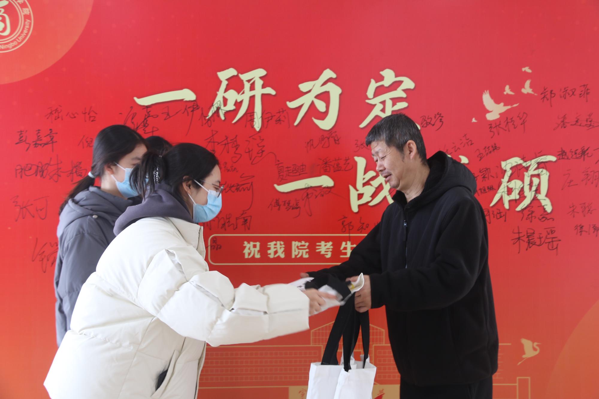 班主任老师也来到现场为学子们派发礼物、加油助威,叮嘱大家特殊时刻一定保护好自己,稳定心态,满怀信心认真备考。