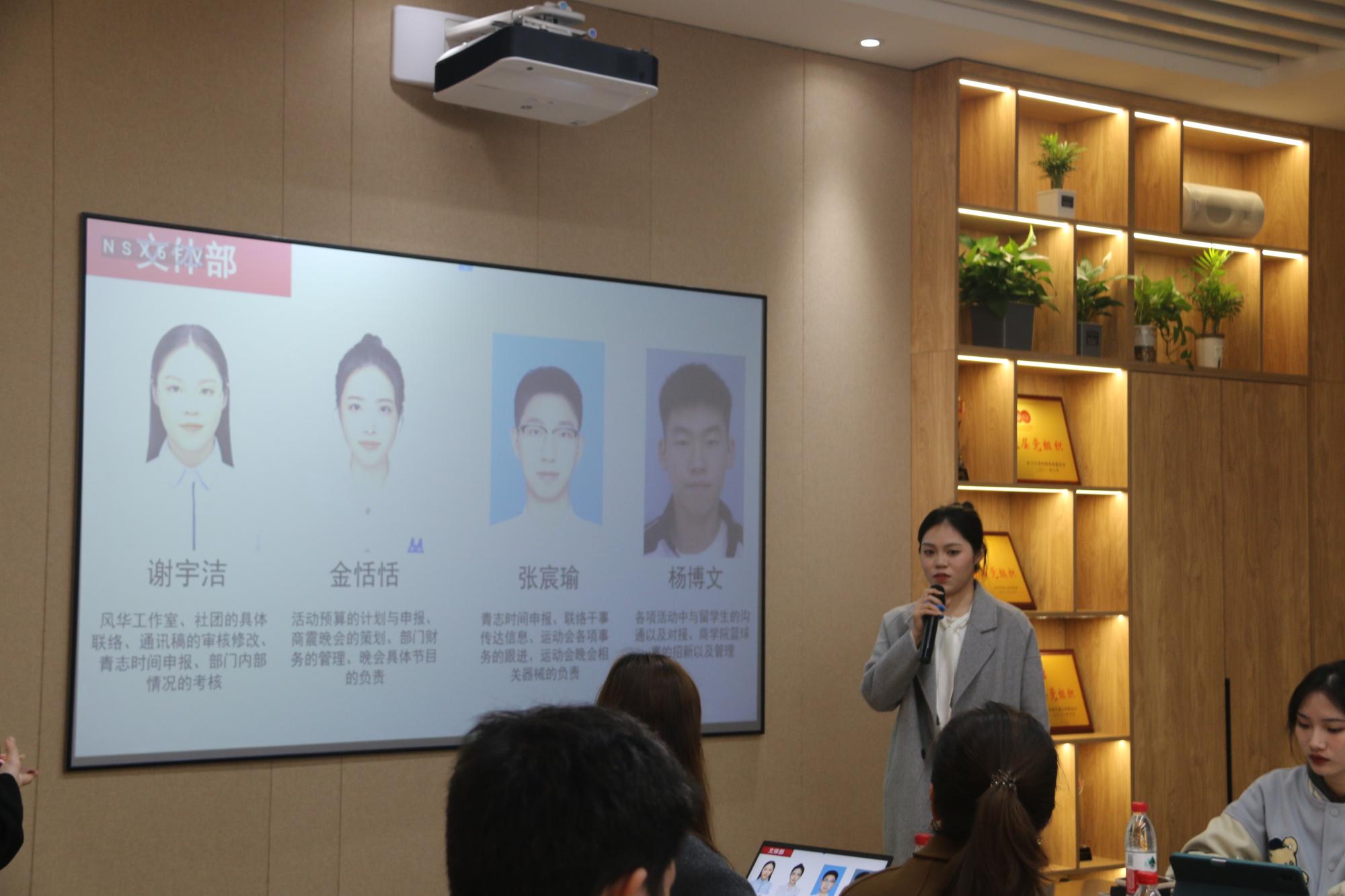 随后,开始进行学生会2022-2023学年第一学期工作述职。学生会六个部门分别对上一学期的工作归纳总结,同时也就本学期即将开展的相关工作计划进行了阐述。主席团成员以及各部门部长进行了精彩发言,大家纷纷提出要加强学生会各部门的联结与合作,共同打造清正廉洁的 91沈先生 学生会。