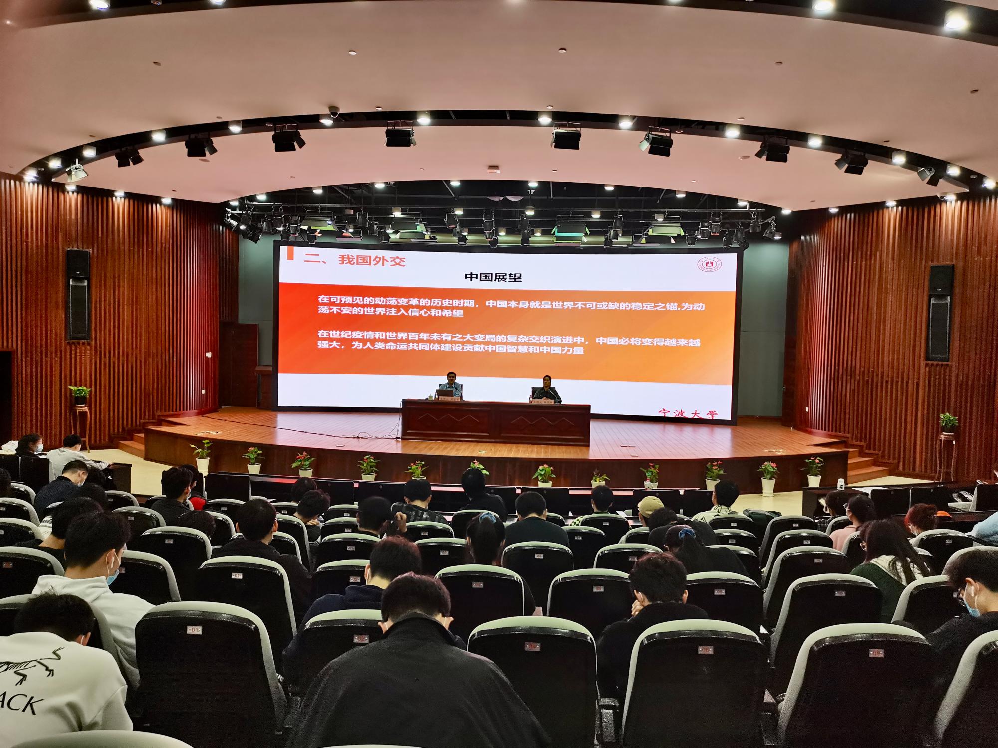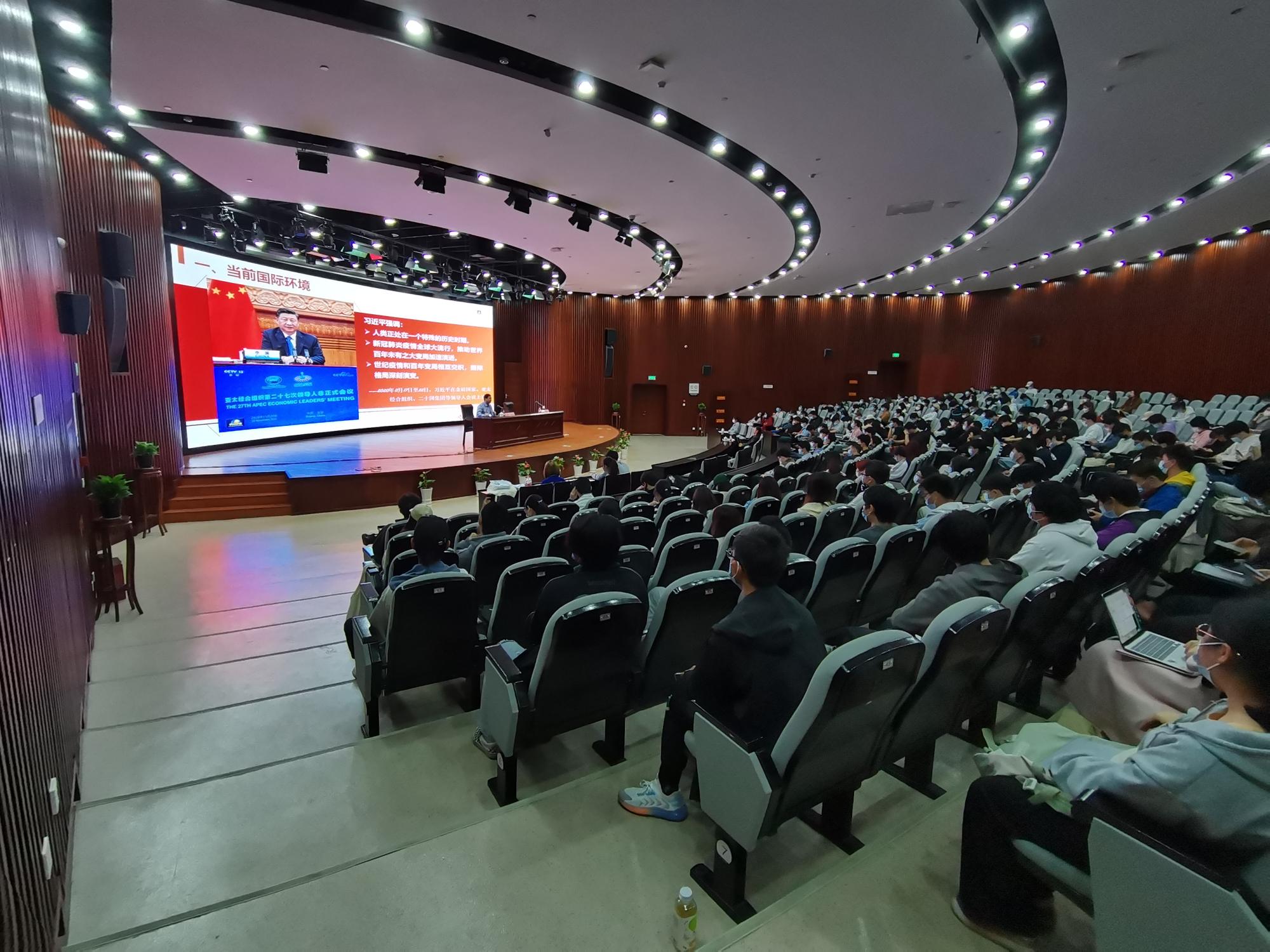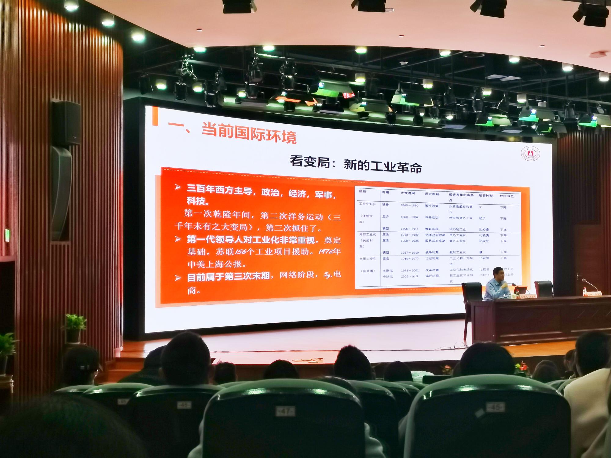 11月25日下午,副校级领导宋富军教授为91沈先生 师生主讲“形势与政策”课,主题为“当前国际环境和我国外交”,共260余名师生参加,91沈先生 党委副书记韩雯琛主持。