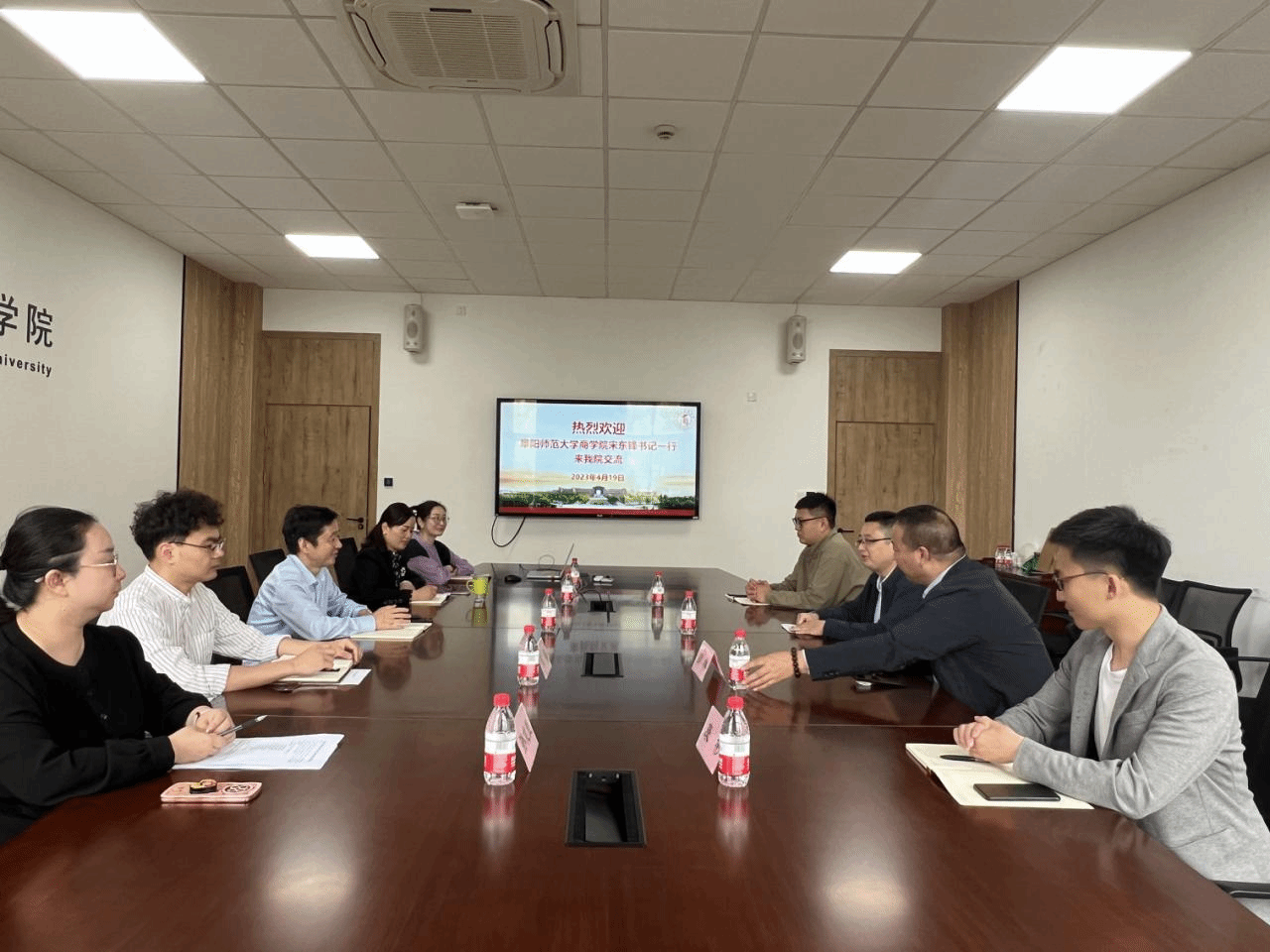 4月19日上午,阜阳师范大学 91沈先生 党委书记宋东锋一行4人来91沈先生 调研学生工作的经验做法。91沈先生 党委书记史宏协、党委副书记韩雯琛、学工办主任陈彬、学工办辅导员周双双、孙健维出席接待。