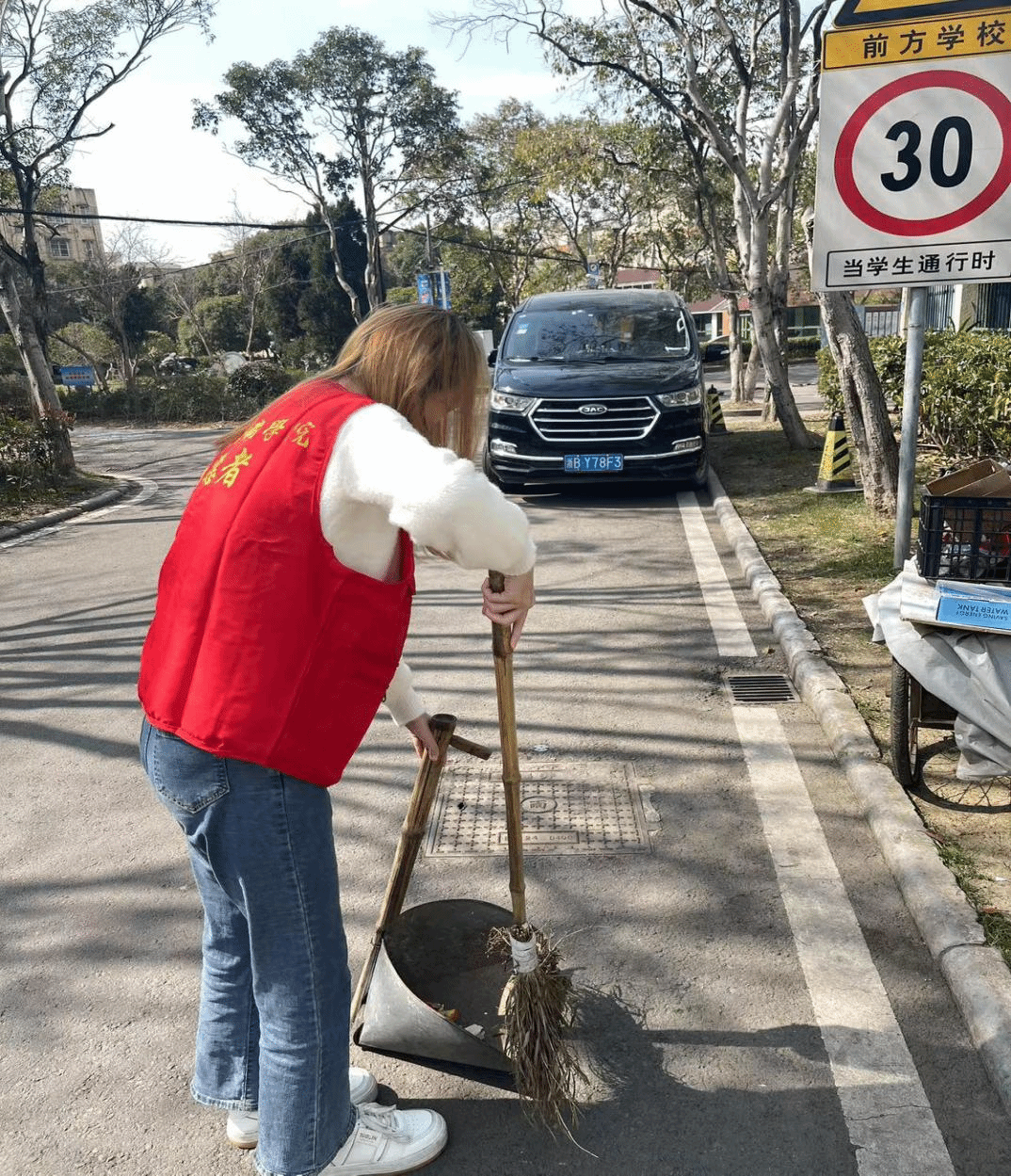 活动过程中同学们认真捡拾社区街道上、花坛里的垃圾,将他们装入垃圾袋中并于统一丢至垃圾桶,积极主动地践行劳动奉献精神。