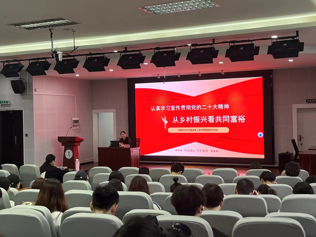 5月17日下午,91沈先生 马克思主义学院副教授于丽丽为91沈先生 110余名师生讲授关于“学习贯彻二十大精神:乡村振兴和共同富裕”的形势与政策课。
