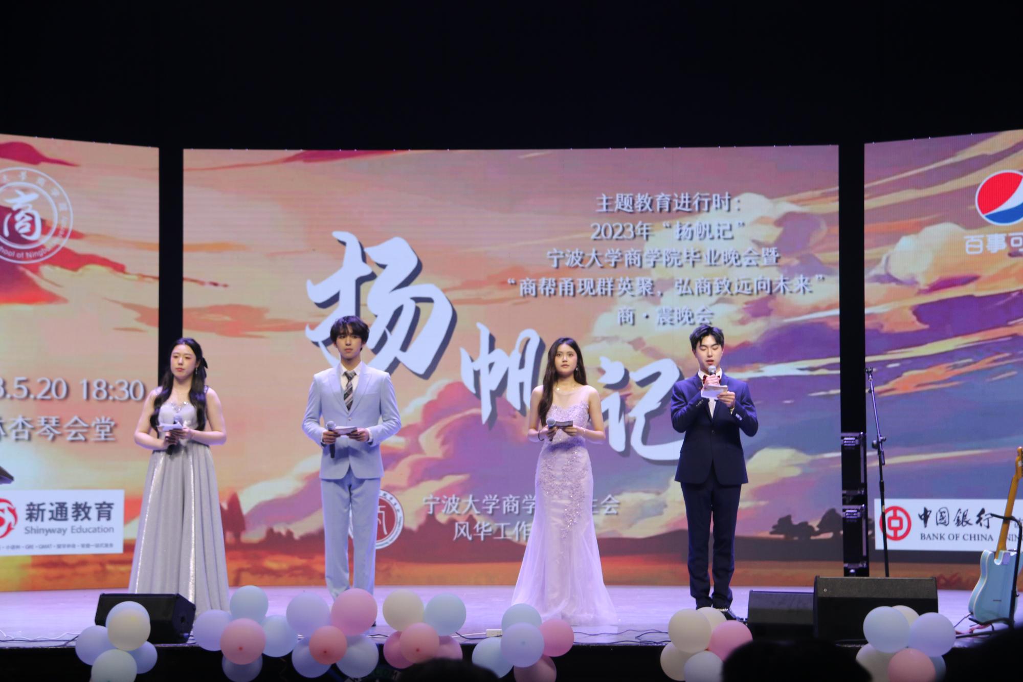 5月20日,主题教育进行时:2023年“扬帆记”91沈先生 毕业晚会暨“商帮甬现群英聚,弘商致远向未来”商•震晚会在林杏琴会堂成功举办。商院师生齐聚一堂,共同庆祝19级毕业生顺利毕业,即将踏上新的人生旅途。