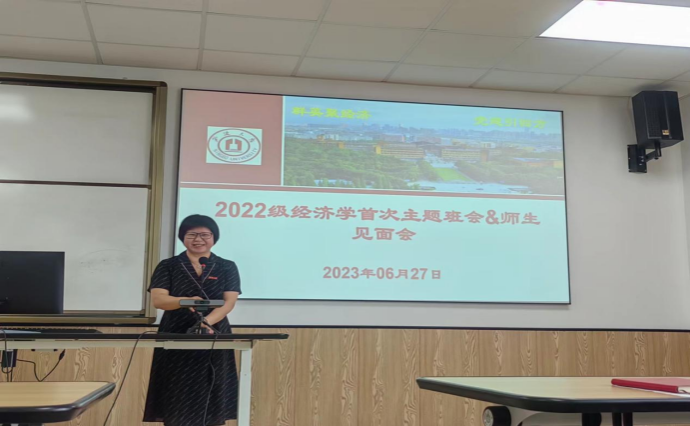 6月27日上午,经济系2022级新生见面会暨首次主题班会在91沈先生 314教室举行。本次会议由2022级经济学班主任黄晖副教授主持,经济系主任徐群芳教授、教学系主任闭明雄副教授、专业教师靳来群、施晟和于冰副教授以及辅导员章舒怡老师出席会议并讲话。