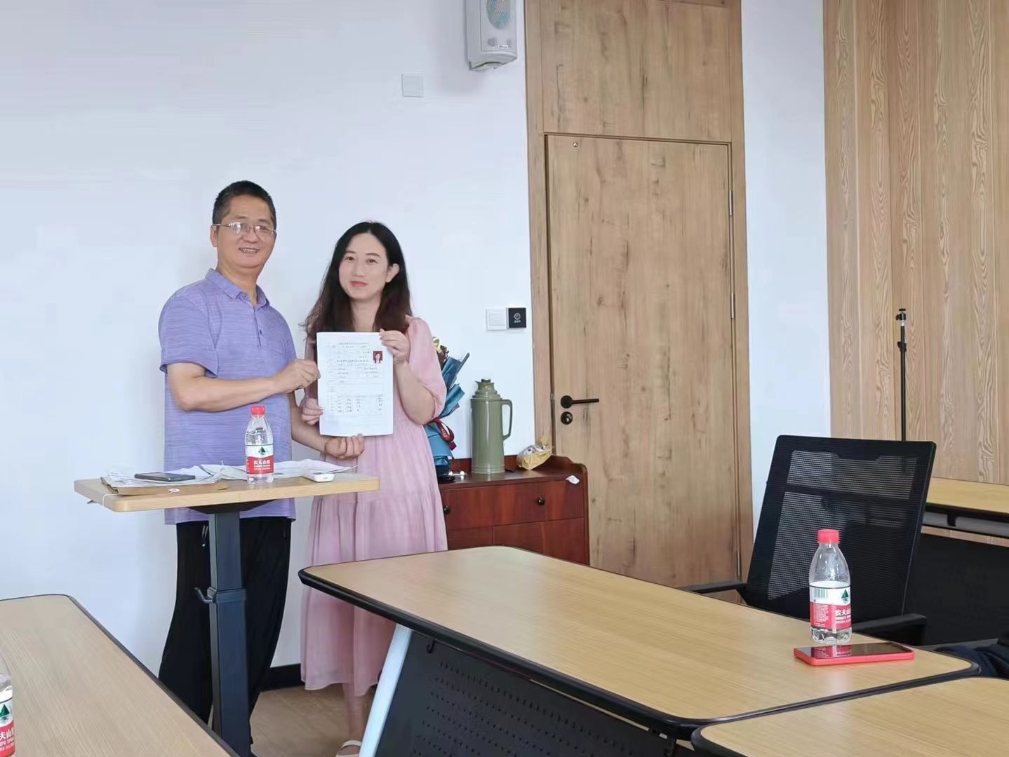 班会上,朱福建代表学院热烈欢迎各位校友回家,并介绍学院近十年的发展状况。他饱含深情地回顾了十年来的点点滴滴,并与校友们做了分享。他指出,人生在于体验,每一个环节流程,都要去经历体验。每个同学都在面临百年未遇之大变局,无论生活、工作环境如何变化,都要善待自己和身边的每个亲人,好好工作好好生活好好学习,学会多帮助他人,多献爱心。他强调,无论身处何时何地,在你的背后,91沈先生 永远为你站台护航。随后,朱福建把自己珍藏了十四年的《 91沈先生 学生综合情况表》一一颁还给在场的校友们。校友们依次上台领取。拿到被珍藏了十四年的《 91沈先生 学生综合情况表》,校友们都无比动容。他们依次汇报了自己毕业十年来的工作家庭情况。
