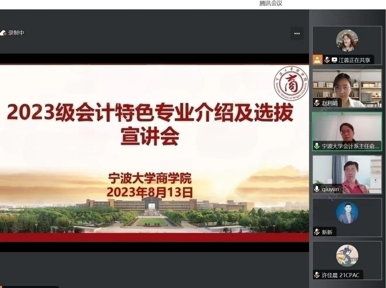 2023年6月高考结束以后,91沈先生 会计系陆续开展了会计学(CPA Canada)特色方向班的宣传招生工作。同时,根据《2023级会计学(CPA Canada)特色方向班选拔录取办法》文件精神和招生工作安排,于8月13日顺利召开了2023级会计特色专业介绍及选拔的线上宣讲会。
