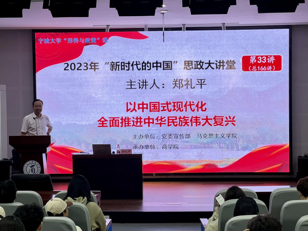 10月25日晚上,91沈先生 马克思主义学院研究员郑礼平教授为91沈先生 180余名师生讲授“以中国式现代化 全面推进中华民族伟大复兴”为主题的形式与政策课。